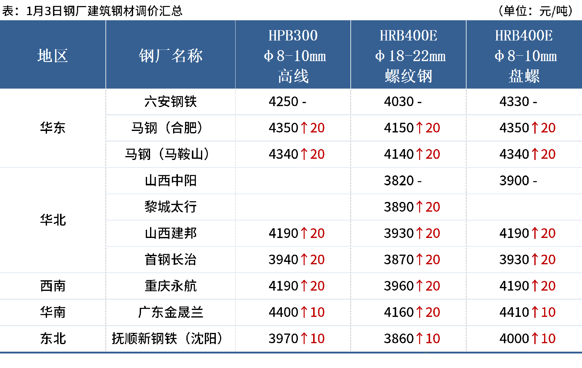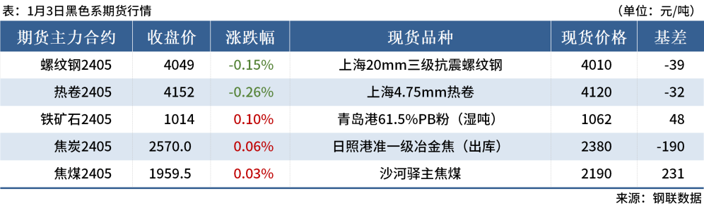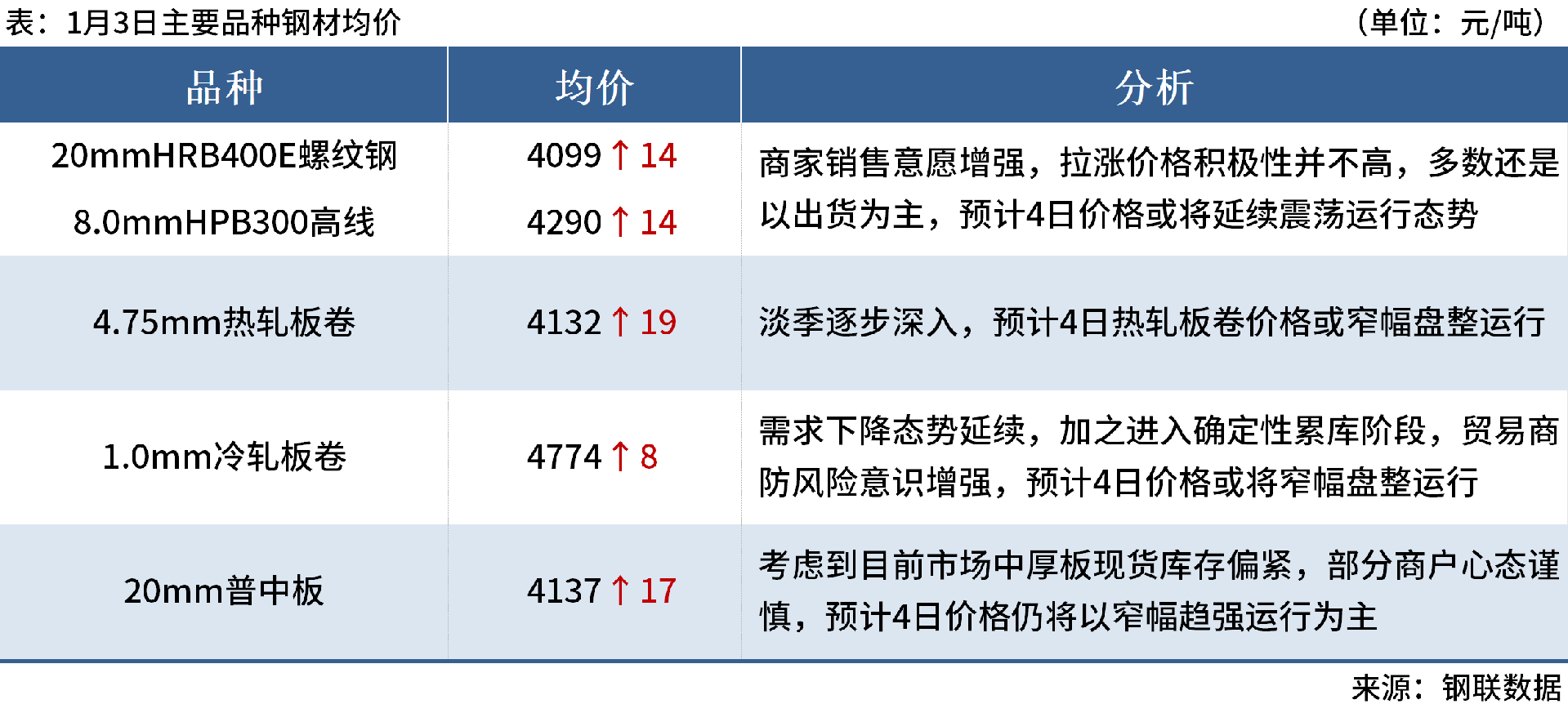 ◎1月3日,全國(guó)主港鐵礦石成交89.30萬噸,環(huán)比減18.8%;237家主流貿(mào)易商建筑鋼材成交13.48萬噸,環(huán)比減18.2%。