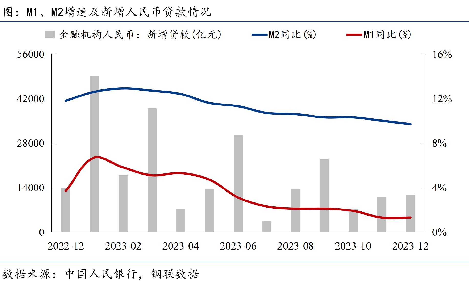 ◎ 2023年金融數據平穩(wěn)收官。12月末,社會融資規(guī)模存量378.09萬億元,同比增長9.5%;12月新增貸款1.17萬億元;M2同比增長9.7%,繼續(xù)保持流動性合理充裕。2023年全年人民幣貸款增加22.75萬億元,同比多增1.31萬億元。初步統(tǒng)計,2023年全年社會融資規(guī)模增量累計為35.59萬億元,比上年多3.41萬億元。