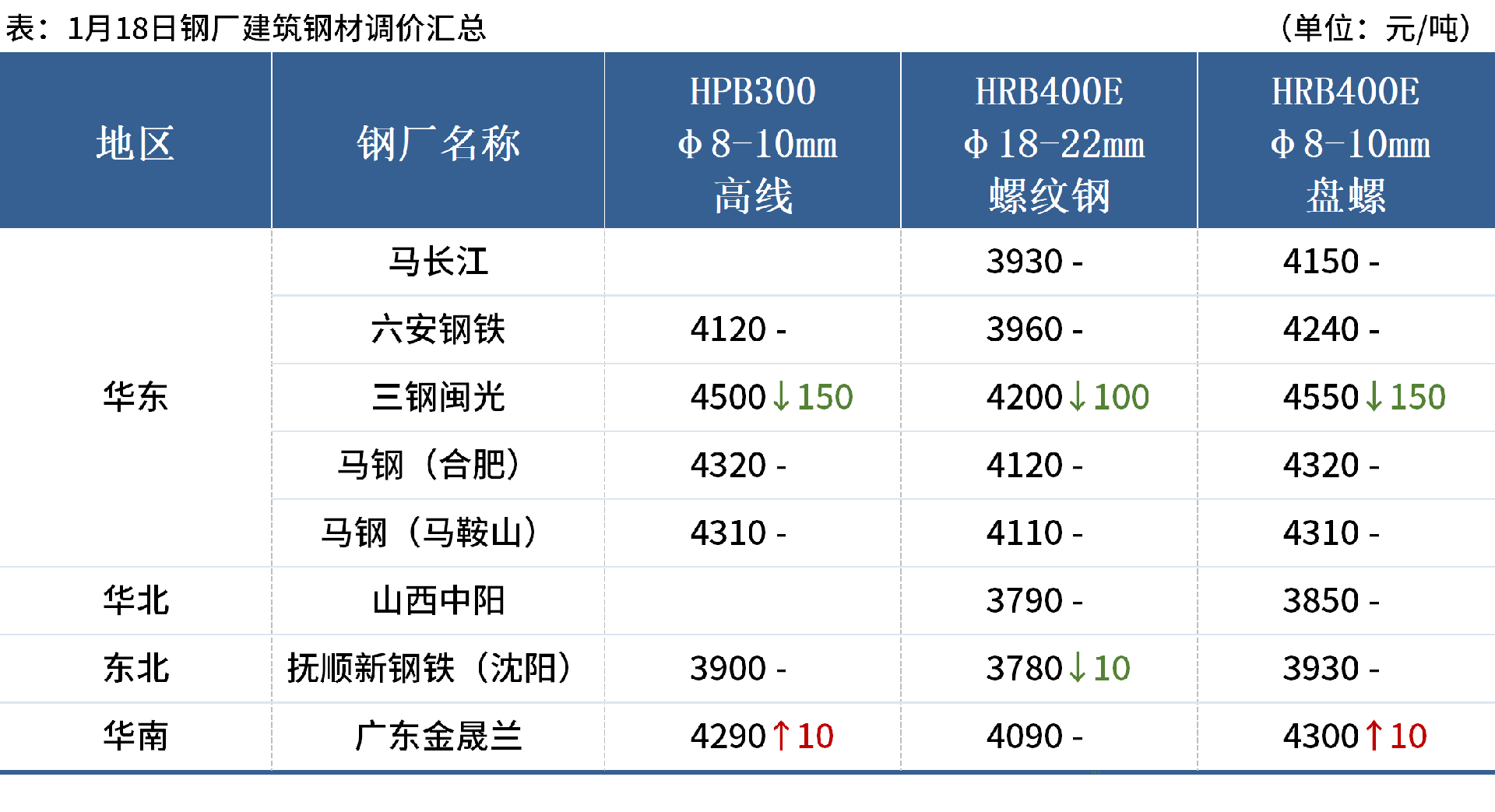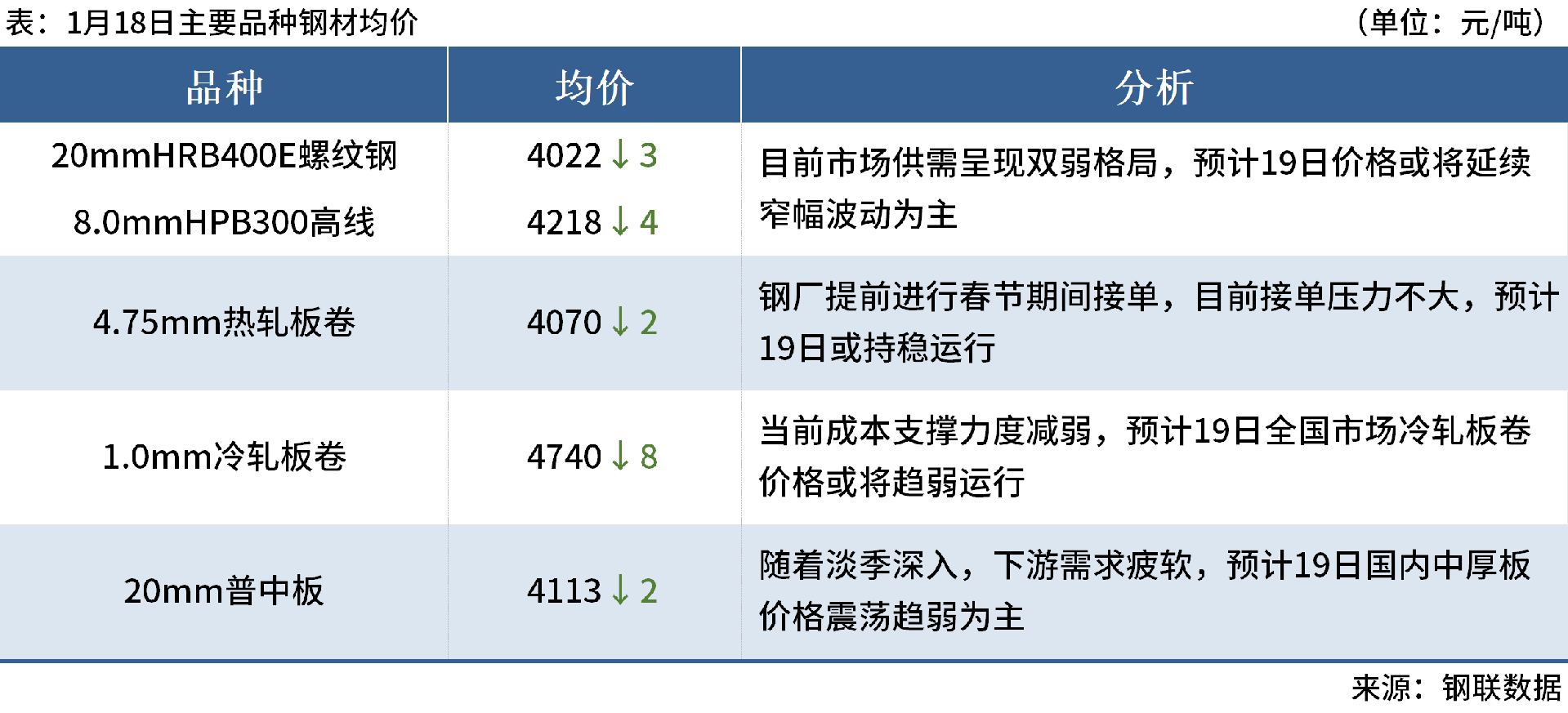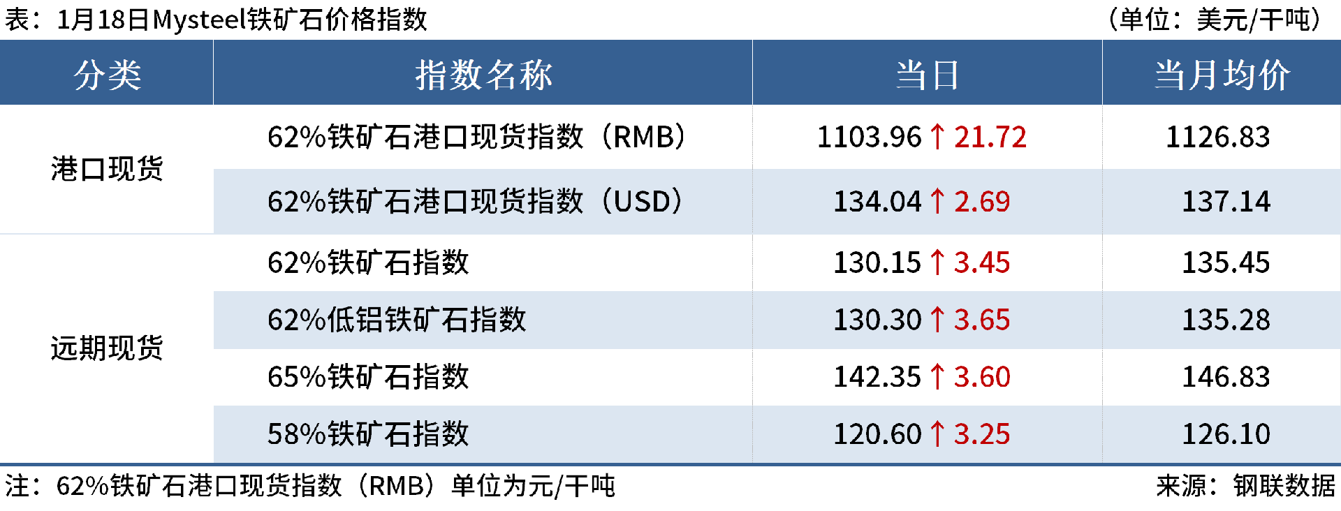 ◎1月18日,全國(guó)主港鐵礦石成交105.50萬噸,環(huán)比增26.7%;237家主流貿(mào)易商建筑鋼材成交10.25萬噸,環(huán)比增4%。