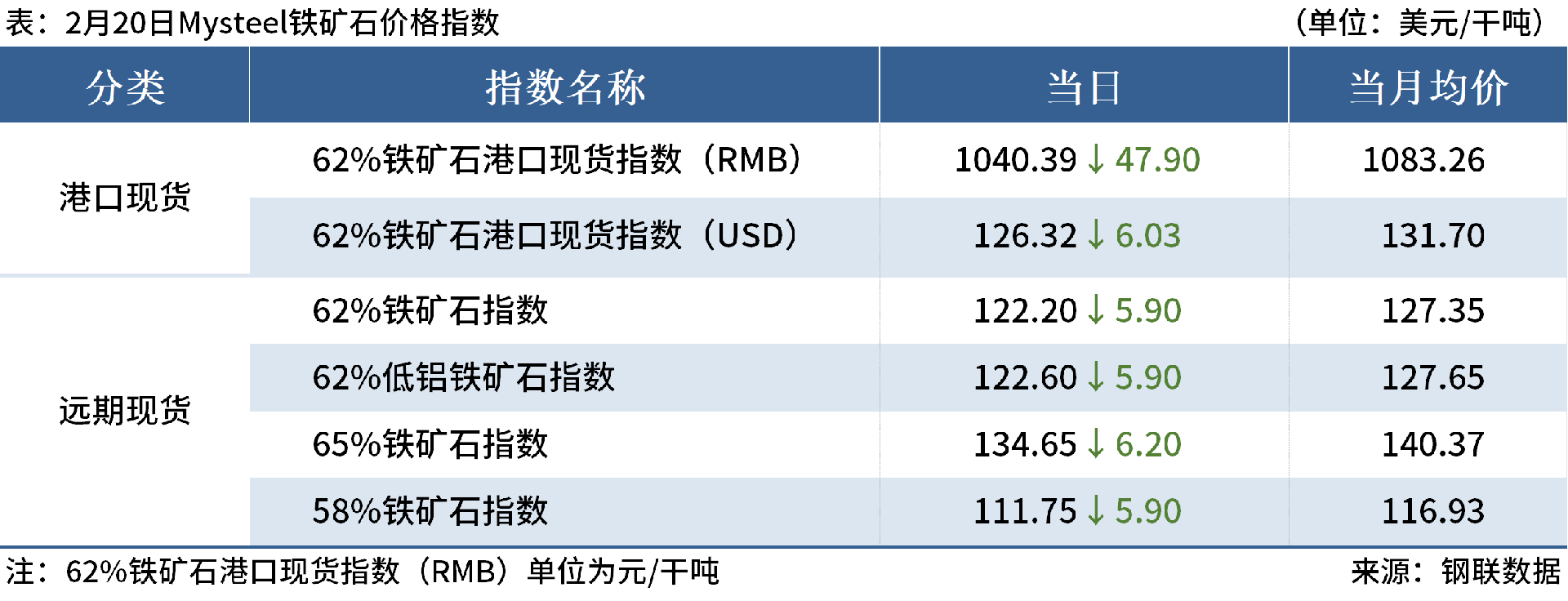 ◎2月20日,全國主港鐵礦石成交42.50萬噸,環(huán)比減29.8%