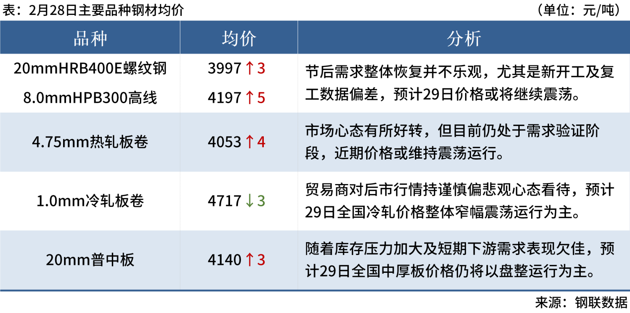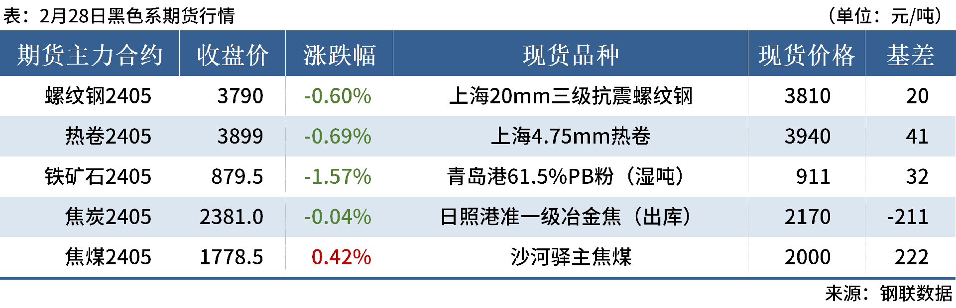 ◎ 2月28日,全國主港鐵礦石成交86.90萬噸,環(huán)比減5%;237家主流貿易商建筑鋼材成交7.83萬噸,環(huán)比減27.2%。