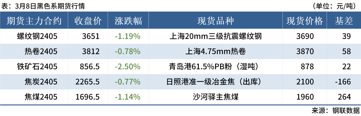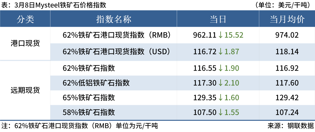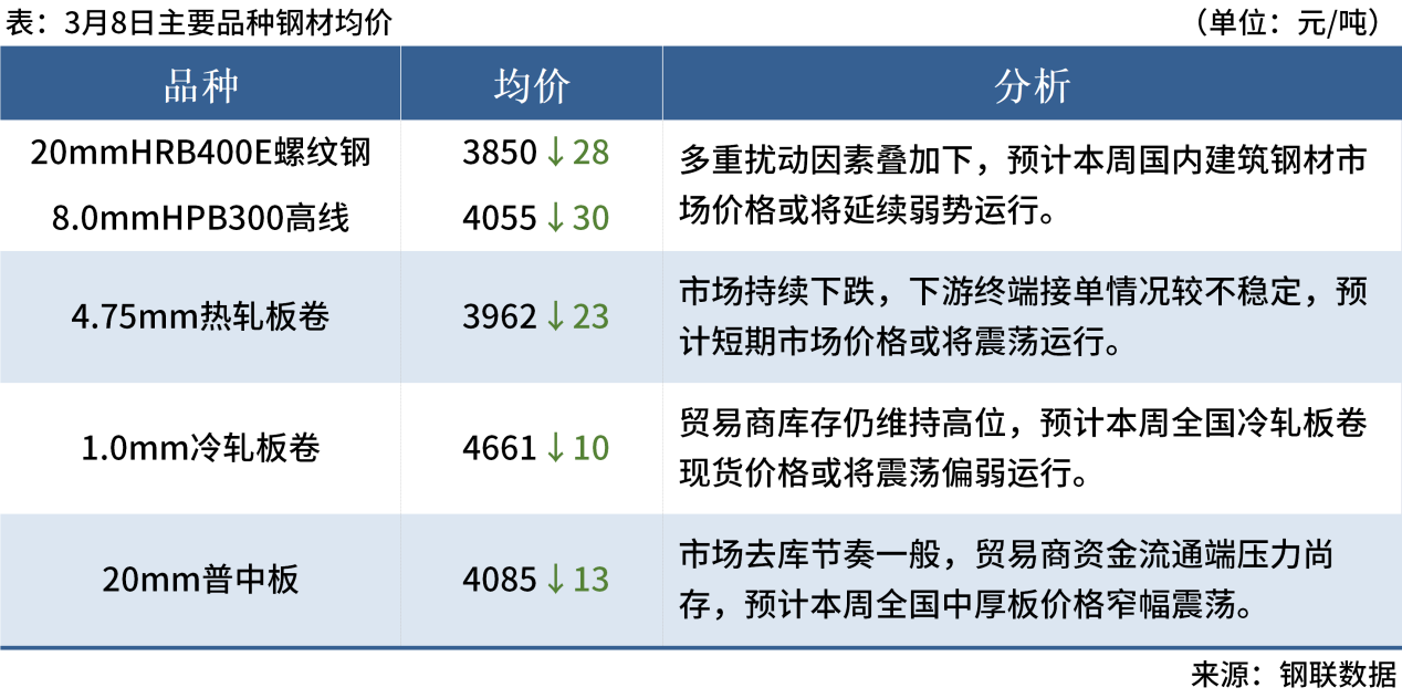 ◎ 3月8日,全國(guó)主港鐵礦石成交81.90萬(wàn)噸,環(huán)比減0.5%;237家主流貿(mào)易商建筑鋼材成交10.63萬(wàn)噸,環(huán)比減5.6%。