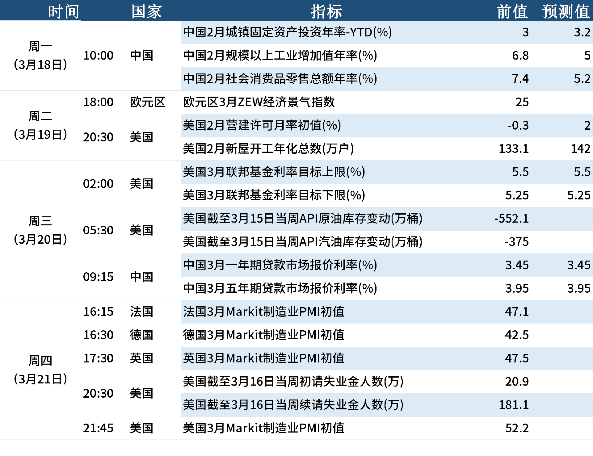 ◎ 3月14日,央行黨委召開擴大會議強調(diào),要聚焦保持穩(wěn)健的貨幣政策靈活適度、精準有效,綜合運用多種貨幣政策工具,保持流動性合理充裕,促進社會融資規(guī)模、貨幣供應(yīng)量同經(jīng)濟增長和價格水平預(yù)期目標(biāo)相匹配。