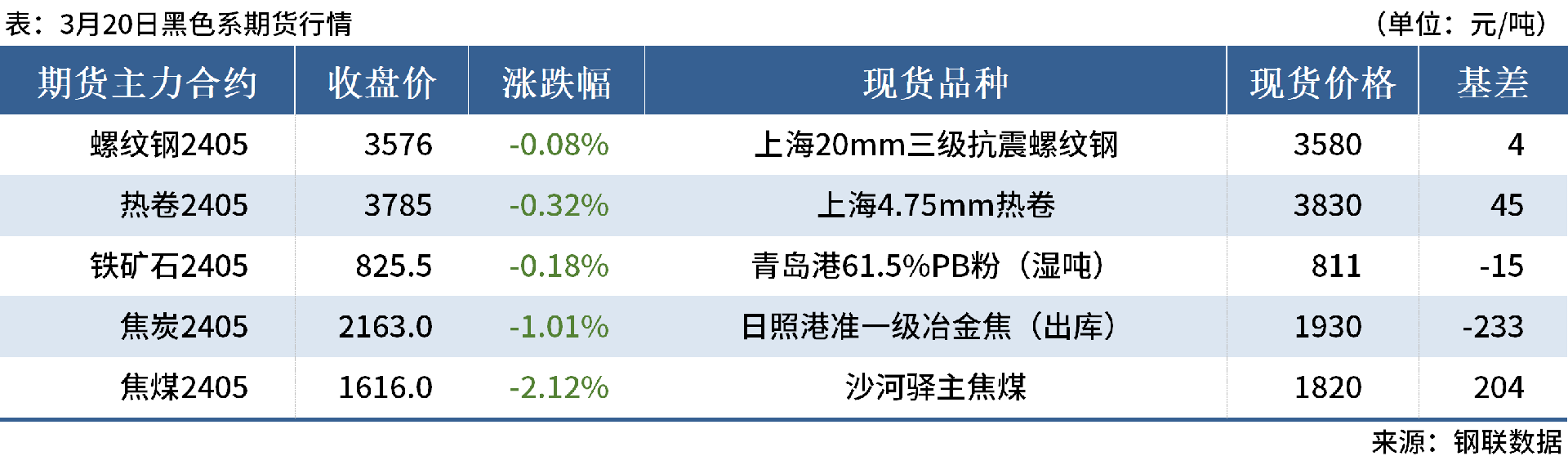 ◎3月20日,全國主港鐵礦石成交95.90萬噸,環(huán)比減24.7%;237家主流貿(mào)易商建筑鋼材成交14.23萬噸,環(huán)比減24.1%。