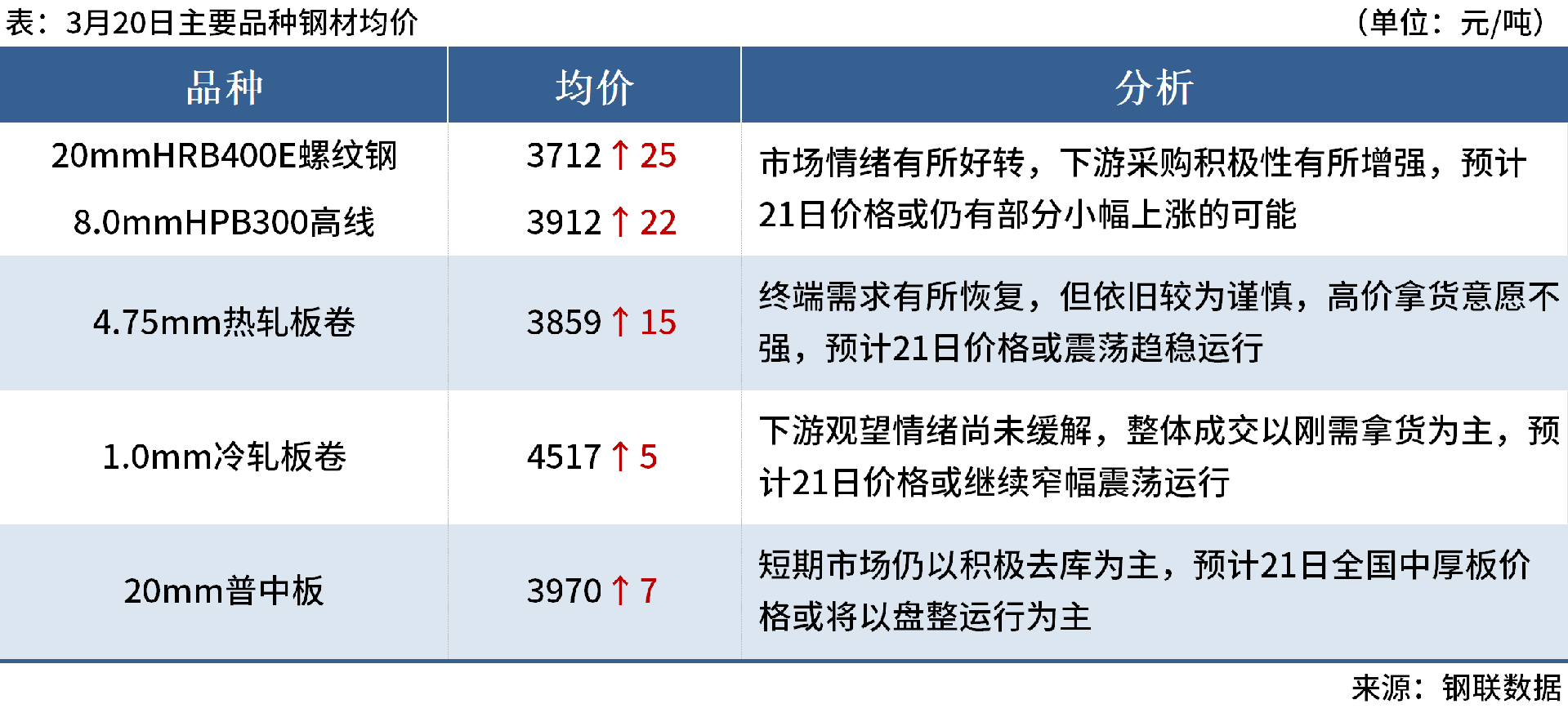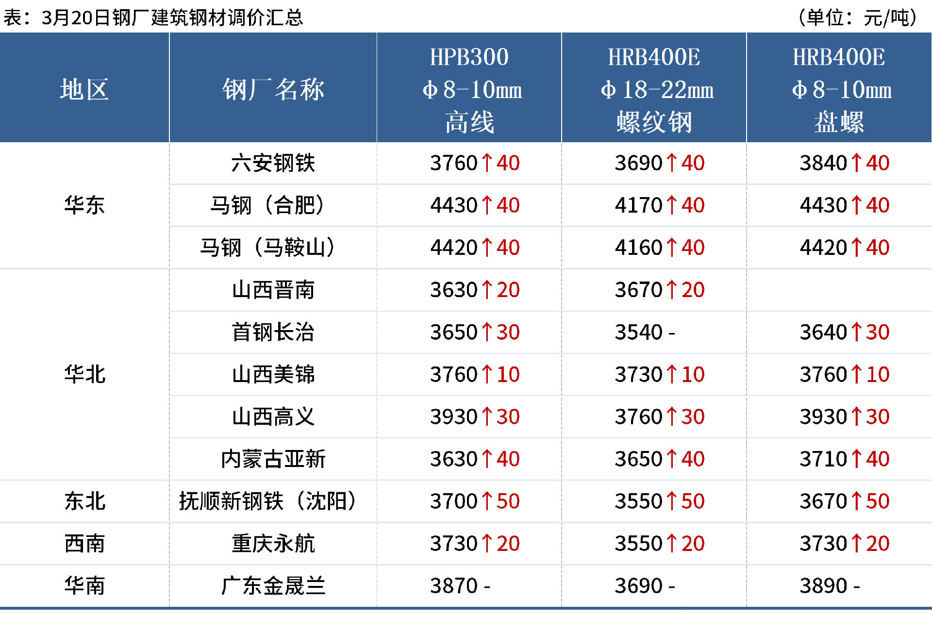 ◎3月20日中天鋼鐵出臺3月下旬出廠價,螺紋下調(diào)100元/噸、線材盤螺下調(diào)50元/噸,現(xiàn)華東螺紋3700元/噸、線材盤螺4000元/噸。