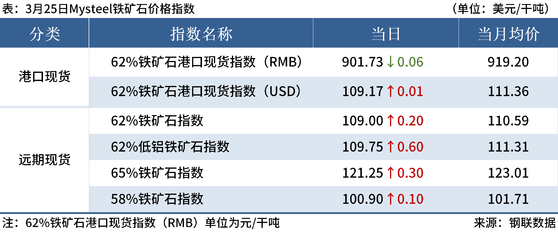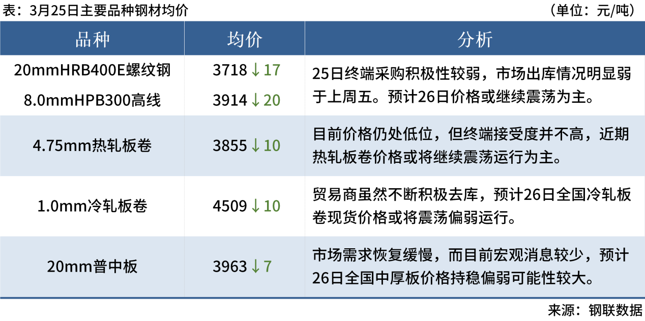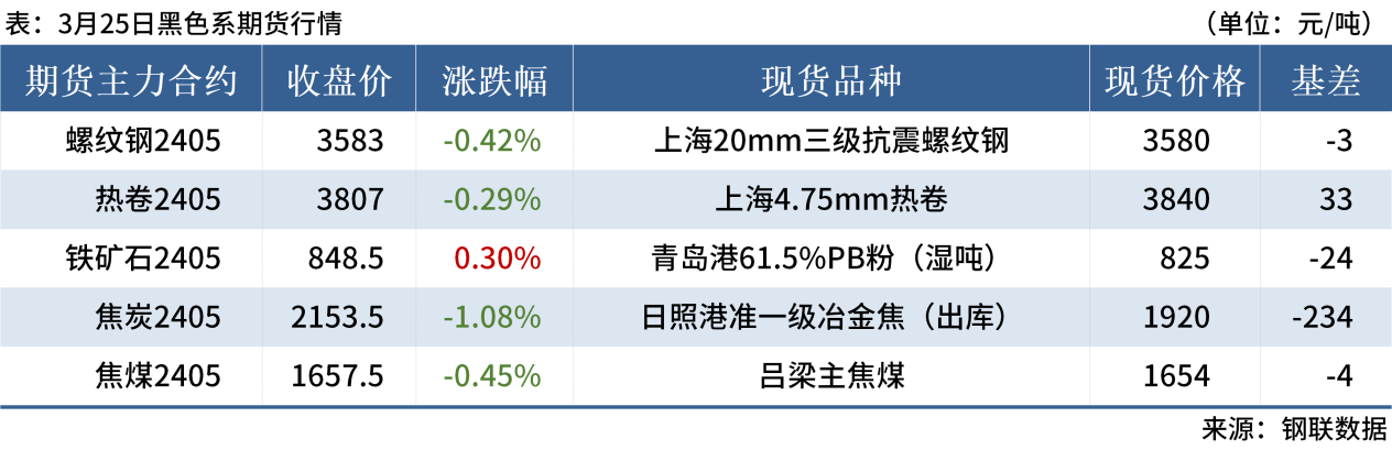 ◎ 3月25日,全國主港鐵礦石成交95.20萬噸,環(huán)比增26.9%;237家主流貿(mào)易商建筑鋼材成交13.64萬噸,環(huán)比減1%。