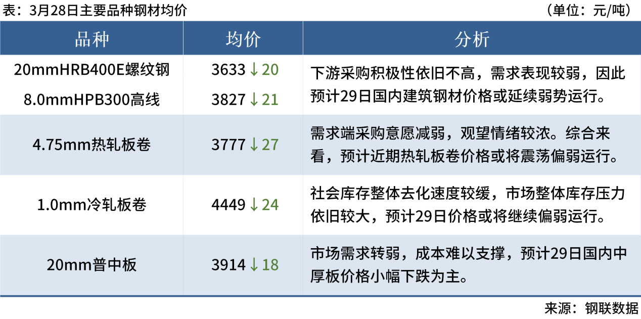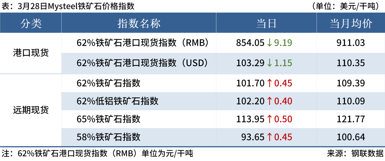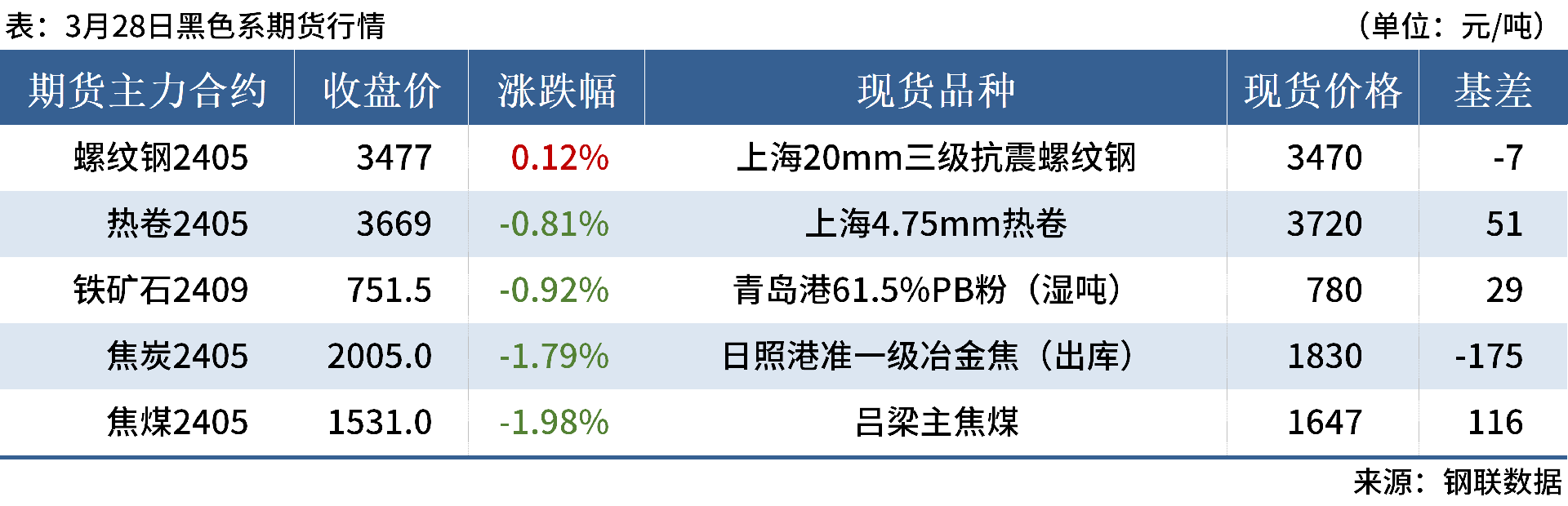 ◎ 3月28日,全國(guó)主港鐵礦石成交79.10萬噸,環(huán)比減4.7%;237家主流貿(mào)易商建筑鋼材成交14.41萬噸,環(huán)比增29.8%。