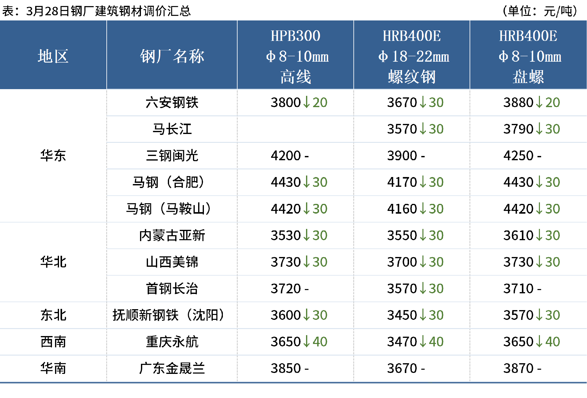 ◎ 3月28日,江蘇沙鋼廢鋼采購(gòu)價(jià)格下調(diào)50元/噸,重三含稅2700元/噸,爐一含稅2780元/噸,年累計(jì)漲跌幅為-360元/噸。