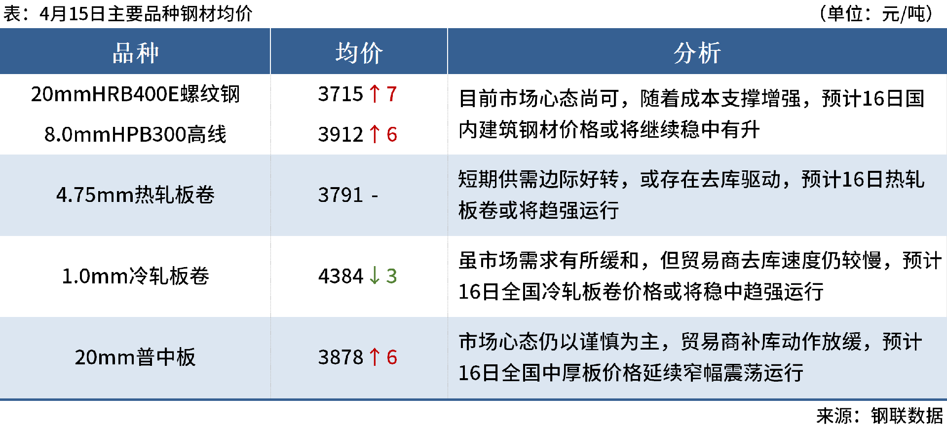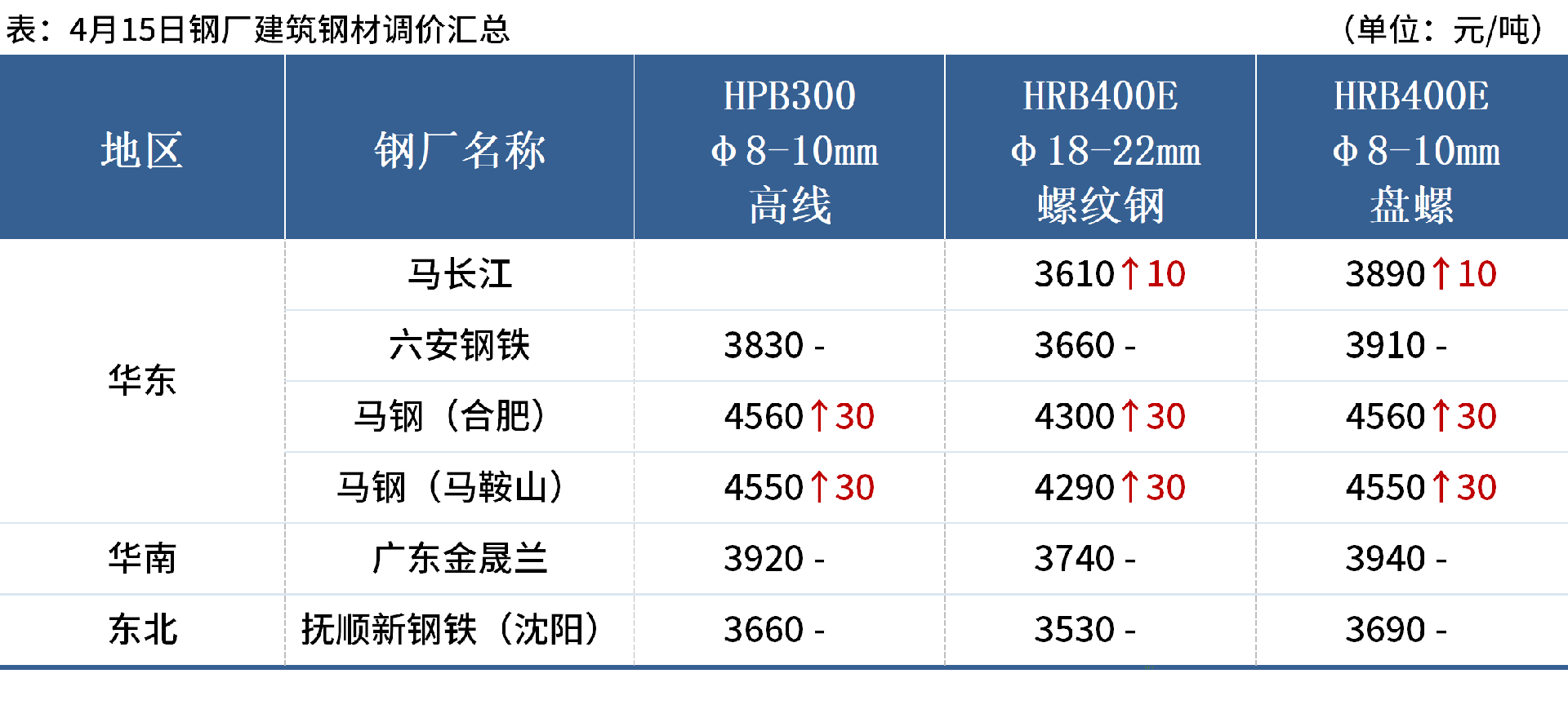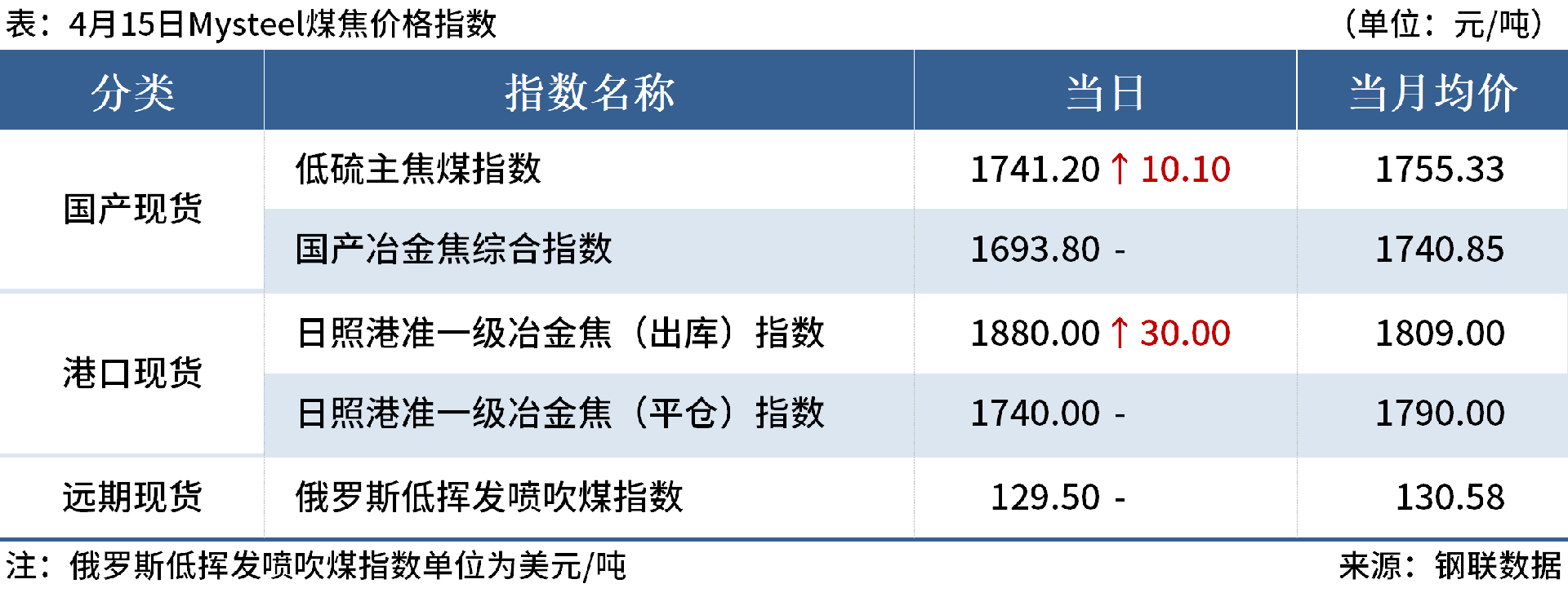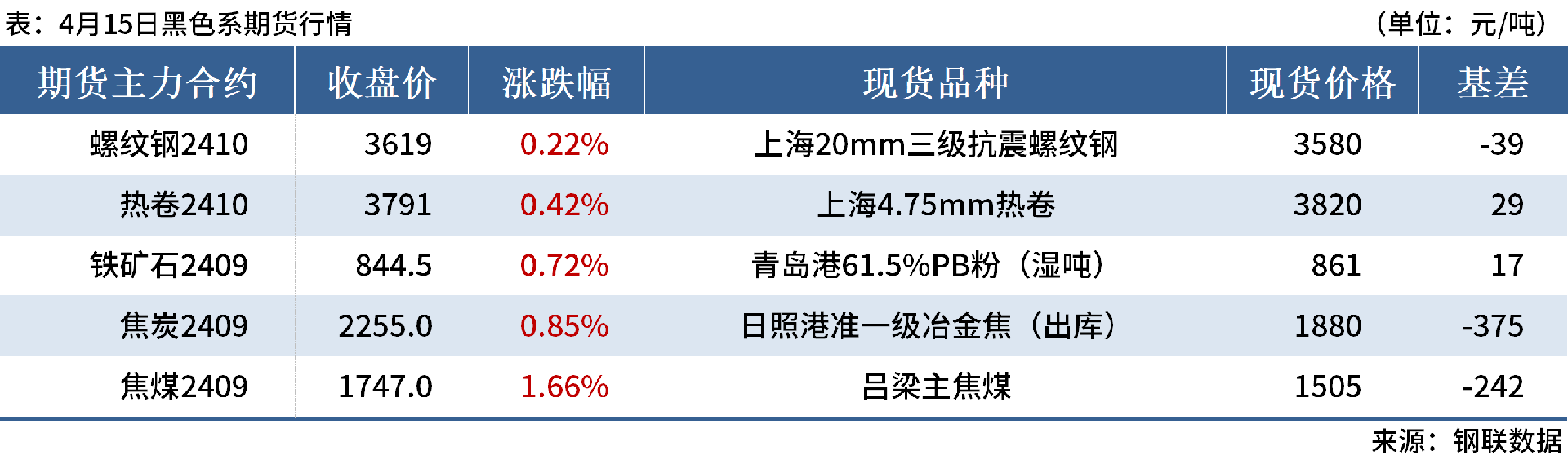 ◎4月15日,河北、山西、山東等多地主流焦企提漲焦炭首輪,漲幅100-110元/噸。