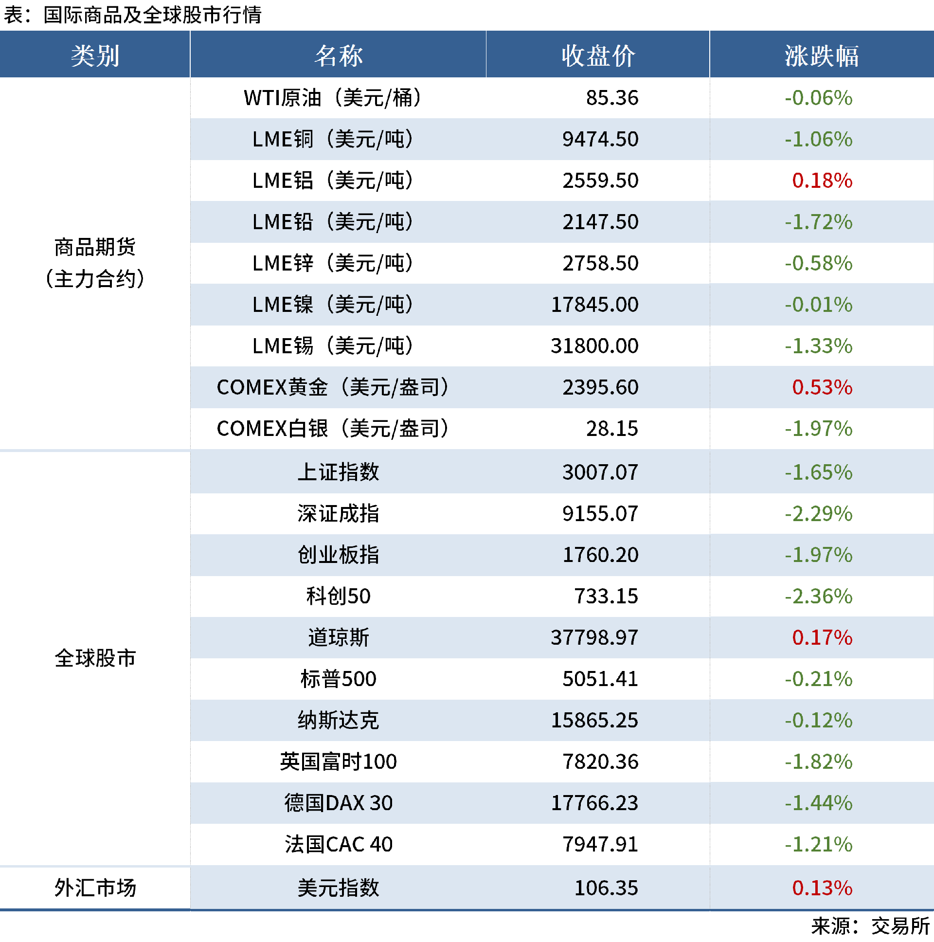 ◎IMF將2024年全球經(jīng)濟(jì)增長(zhǎng)預(yù)期上調(diào)至3.2%,較1月預(yù)測(cè)值高出0.1個(gè)百分點(diǎn)。預(yù)計(jì)全球總體通脹率將從2023年6.8%的年均值,下降至2024年的5.9%和2025年的4.5%。