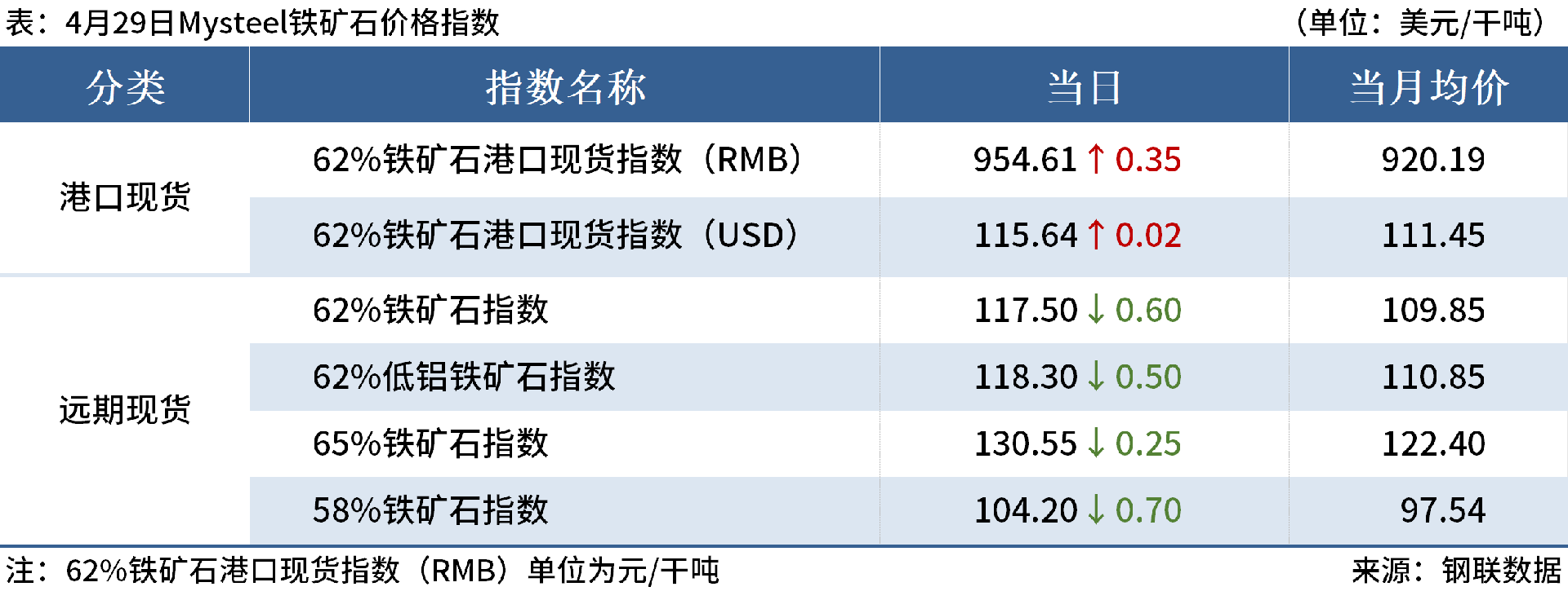 ◎4月29日,全國主港鐵礦石成交73.85萬噸,環(huán)比增22.9%;237家主流貿(mào)易商建筑鋼材成交15.06萬噸,環(huán)比增18.4%。