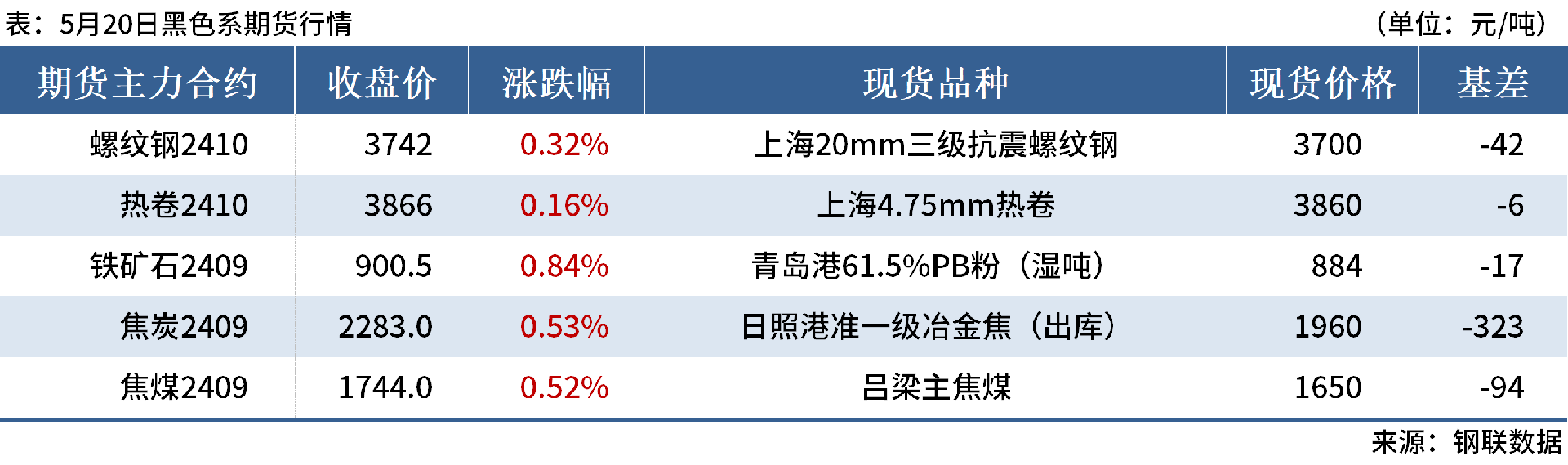 ◎5月20日焦炭開(kāi)啟第一輪提降,邢臺(tái)、石家莊、唐山等地部分鋼廠對(duì)濕熄焦炭下調(diào)100元/噸、干熄焦炭下調(diào)110元/噸,2024年5月21日零點(diǎn)執(zhí)行。