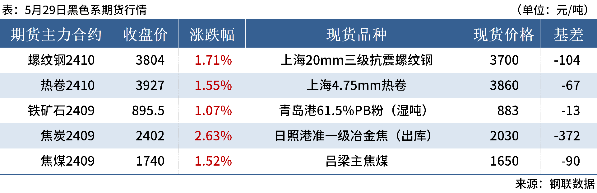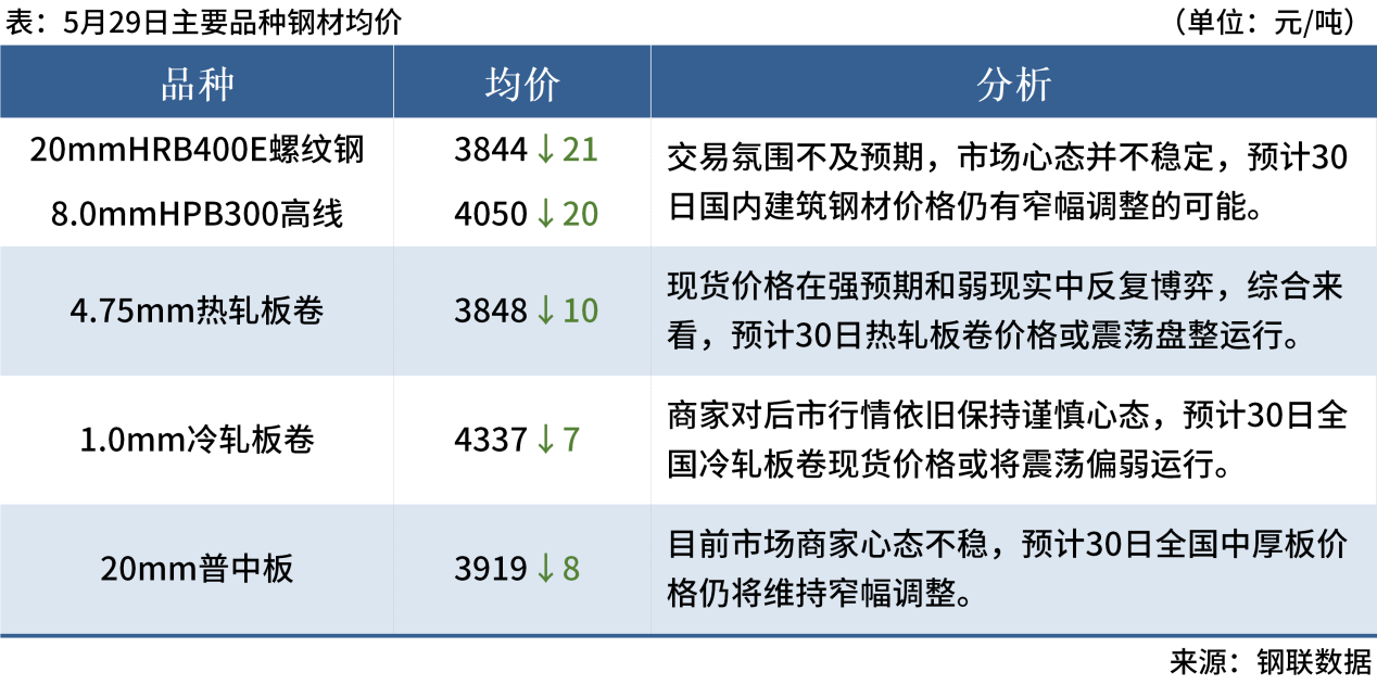◎ 5月29日,全國主港鐵礦石成交85.50萬噸,環(huán)比減19%;237家主流貿(mào)易商建筑鋼材成交12.49萬噸,環(huán)比增2.2%。