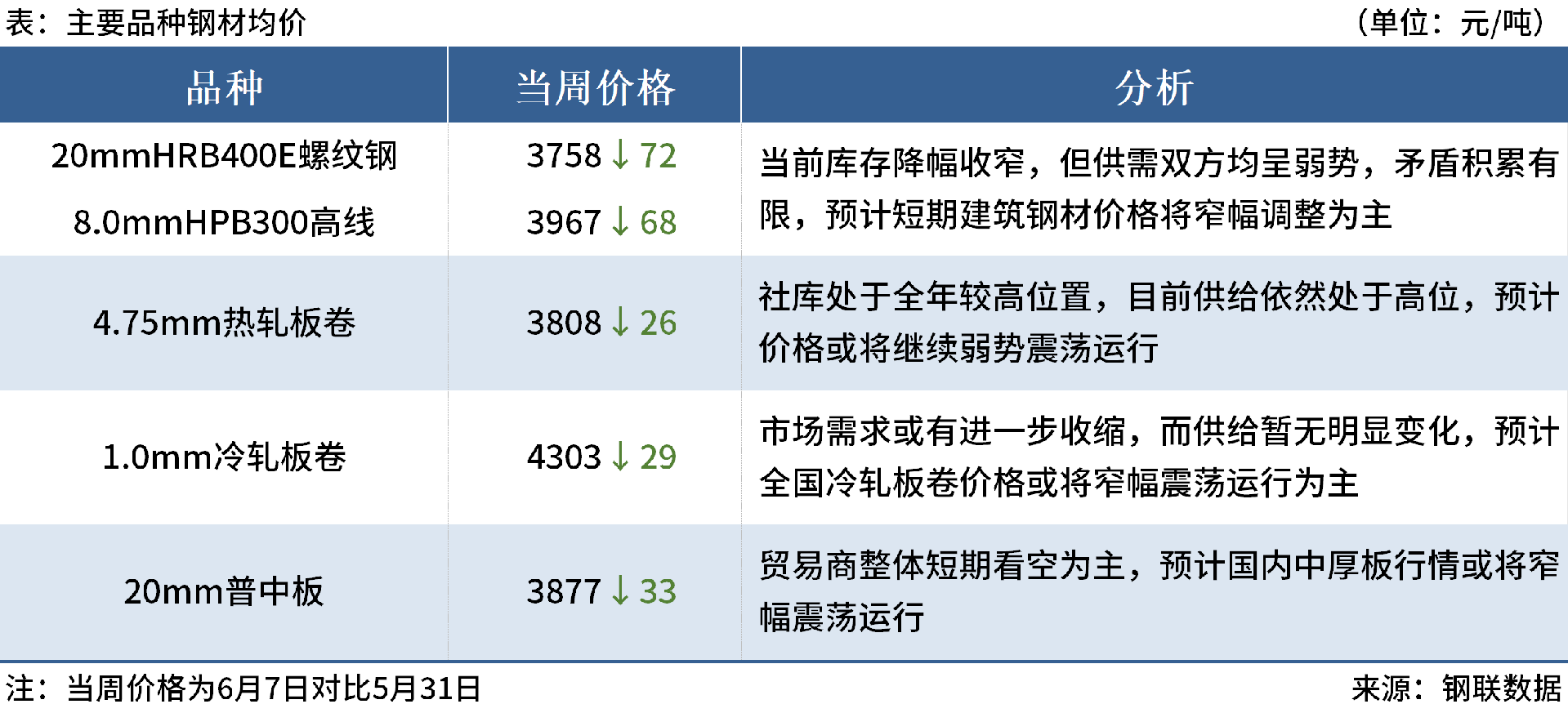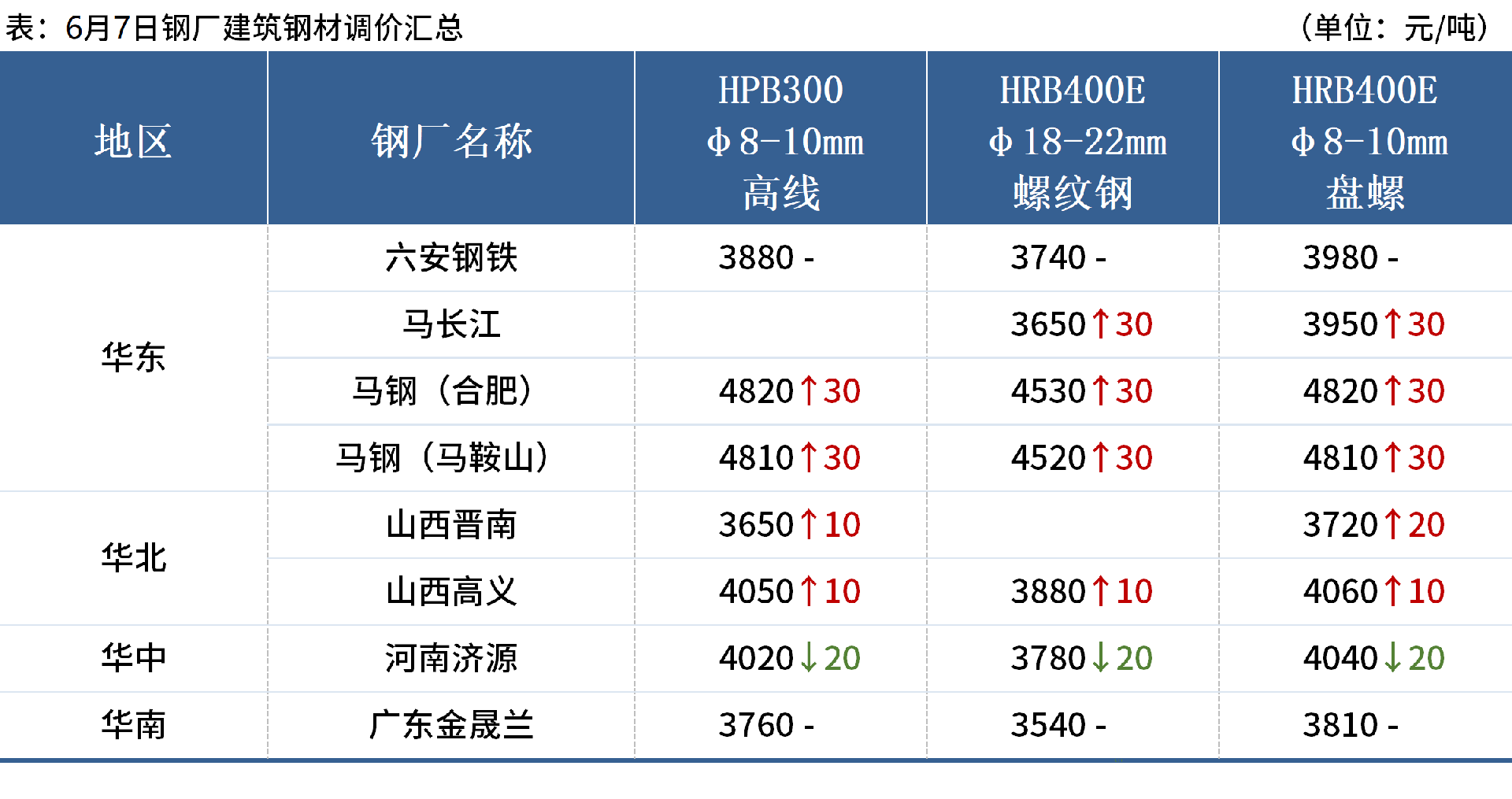 ◎6月10日,中天鋼鐵出臺(tái)6月中旬出廠價(jià),螺紋鋼、線材盤螺下調(diào)80元/噸,現(xiàn)華東螺紋鋼3720元/噸,線材盤螺4020元/噸。