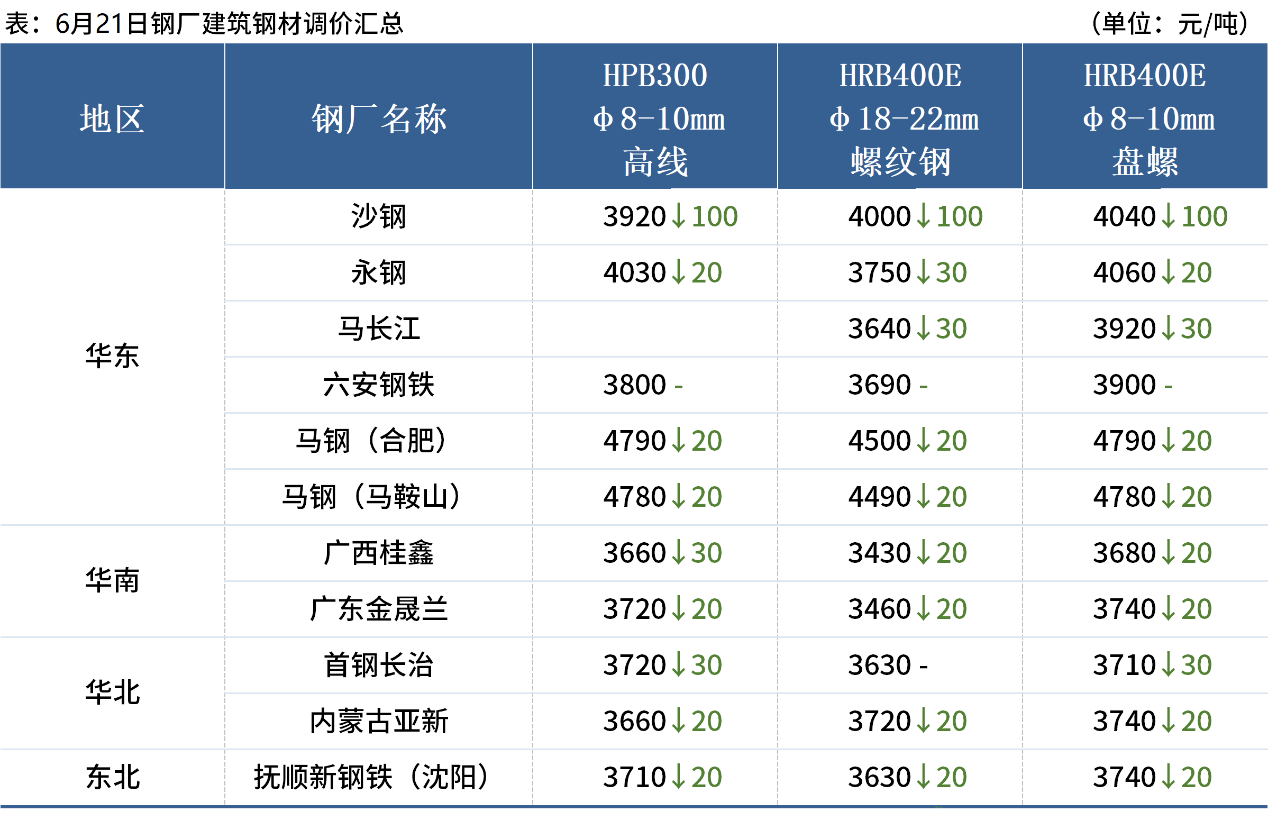 ◎廣東中南鋼鐵股份有限公司高二線計劃6月底之前均停產(chǎn)不開機(預計7月份也不開機);高一線6月21日白班開始停產(chǎn)待料2天,預計23號復產(chǎn)。