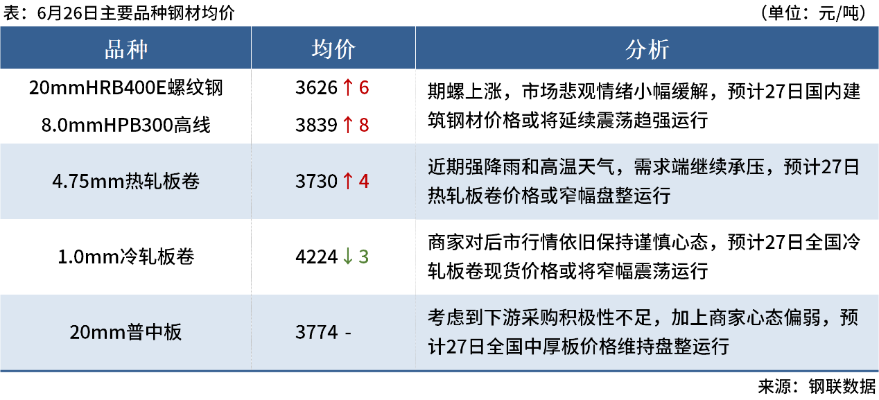 ◎6月26日,全國主港鐵礦石成交90.20萬噸,環(huán)比減16.9%;237家主流貿(mào)易商建筑鋼材成交14.17萬噸,環(huán)比增21.3%。