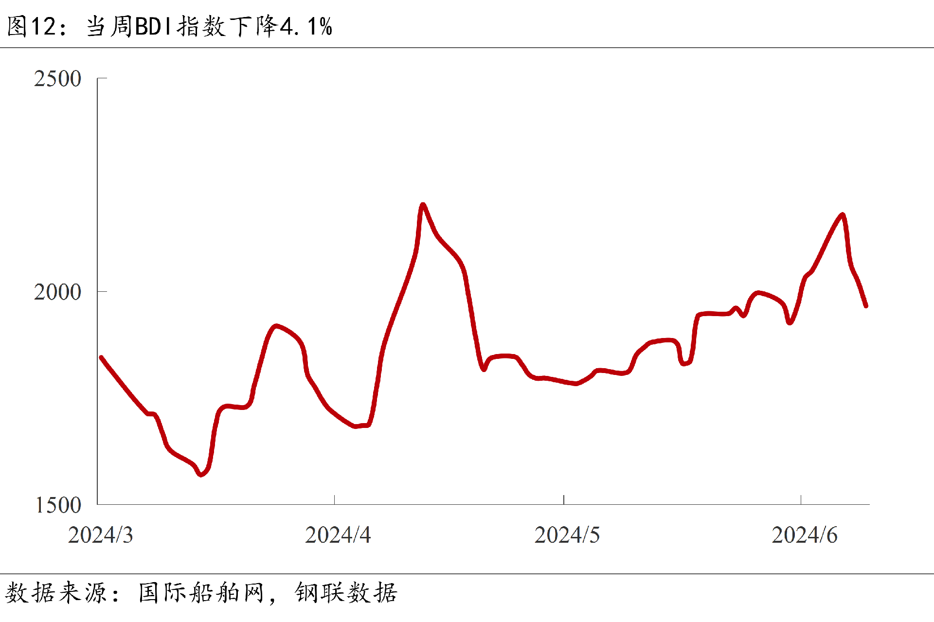 數(shù)據(jù)跟蹤:資金面上,本周央行公開市場實(shí)現(xiàn)凈回籠7400億元。周環(huán)比來看,本周Mysteel調(diào)研247家高爐開工率提高0.4%;全國110家洗煤廠開工率提高1.2%;鐵礦石、煉焦煤、螺紋鋼、電解銅價(jià)格上漲,水泥價(jià)格下跌,混凝土價(jià)格保持穩(wěn)定;乘用車日均零售9.5萬輛,下降1%;BDI下降4.1%。