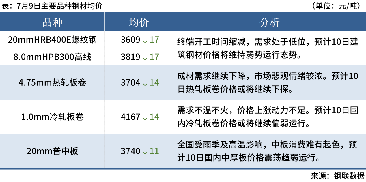 ◎ 7月9日,全國(guó)主港鐵礦石成交87.90萬(wàn)噸,環(huán)比減21.3%;237家主流貿(mào)易商建筑鋼材成交12.73萬(wàn)噸,環(huán)比增22.5%。