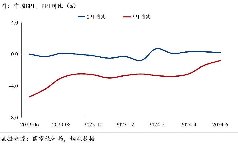 ◎ 6月,中國消費者價格指數(shù)(CPI)同比上漲0.2%,漲幅較上月回落0.1個百分點;工業(yè)品出廠價格(PPI)同比下降0.8%,降幅較上月收窄0.6個百分點。食品價格降幅擴大是CPI同比漲幅回落的主要原因。工業(yè)品價格降幅繼續(xù)收窄的主要推手是去年同期基數(shù)的下沉。