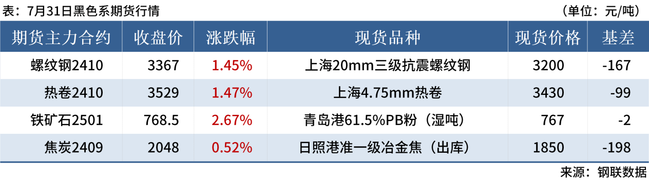 ◎ 7月31日,全國主港鐵礦石成交95.33萬噸,環(huán)比減3.4%;237家主流貿(mào)易商建筑鋼材成交11.52萬噸,環(huán)比增22.3%。