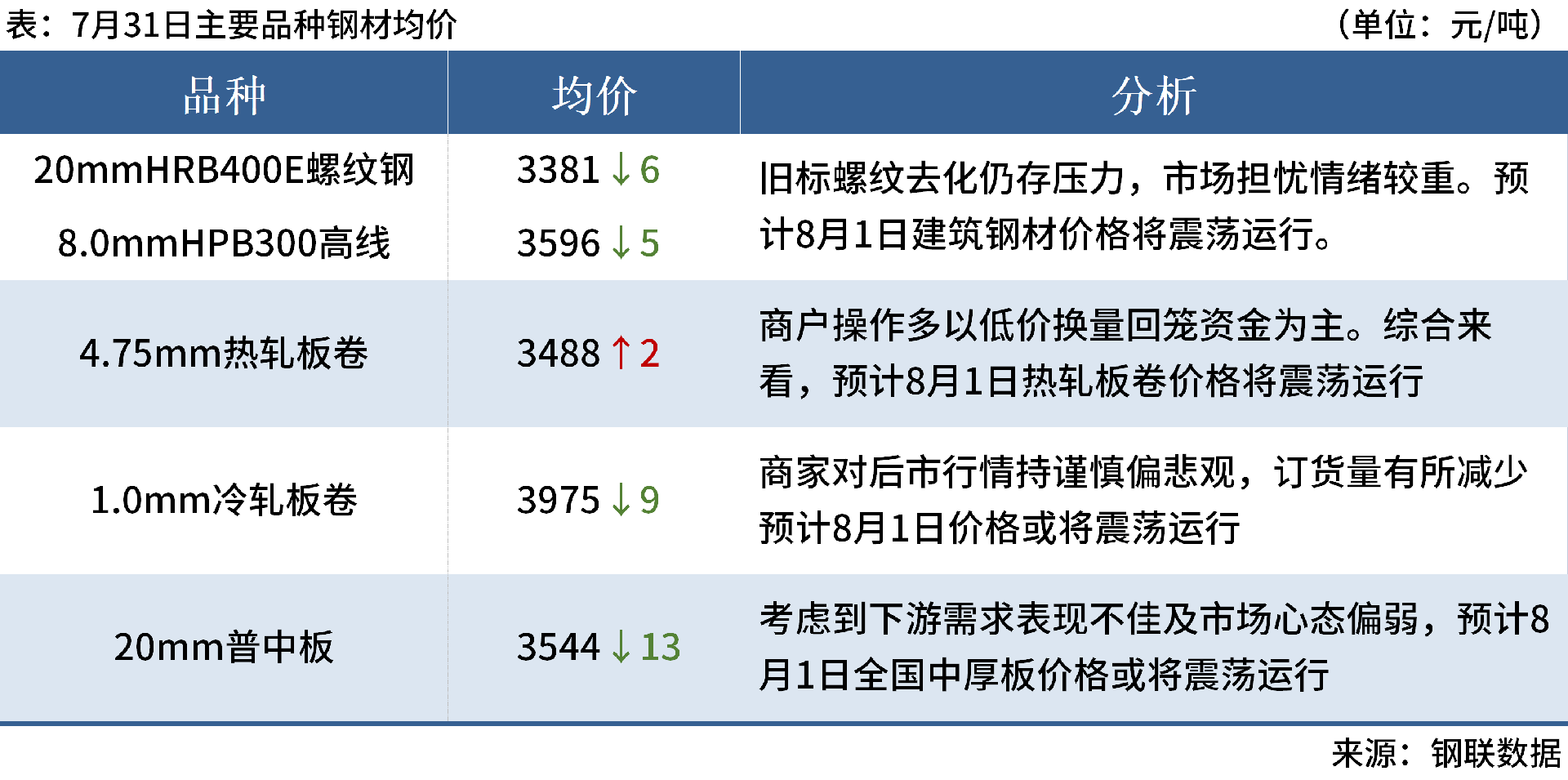 ◎ 西南鋼廠從8月1日起舊國標建材繼續(xù)執(zhí)行現(xiàn)有價格體系,新國標建材結算價格在此基礎上加價30元/噸(新國標加價僅針對螺紋鋼直條,和盤螺盤圓無關)。詳情>>