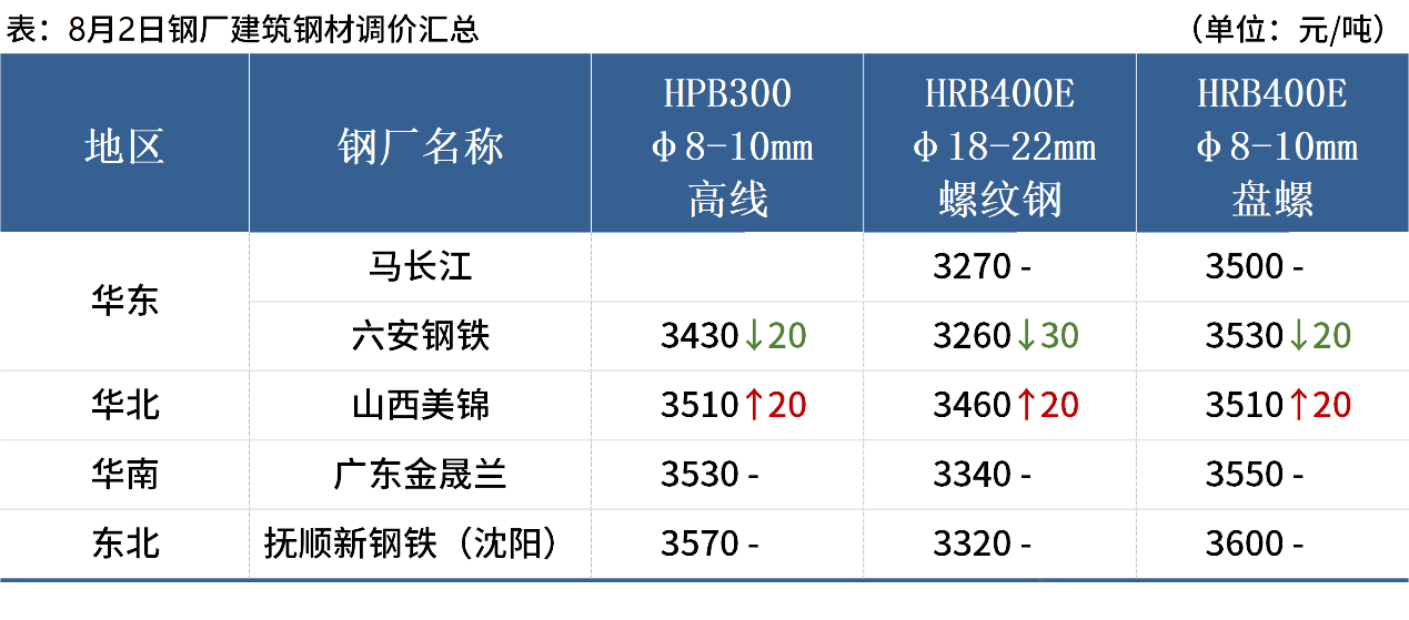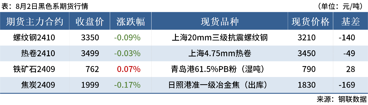 ◎ 8月2日,全國主港鐵礦石成交99.56萬噸,環(huán)比增3.8%;237家主流貿(mào)易商建筑鋼材成交12.47萬噸,環(huán)比增17.8%。