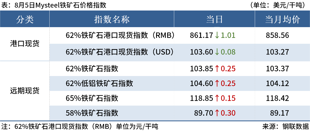 ◎8月5日,全國主港鐵礦石成交77.40萬噸,環(huán)比減22.3%;237家主流貿易商建筑鋼材成交13.07萬噸,環(huán)比增4.8%。
