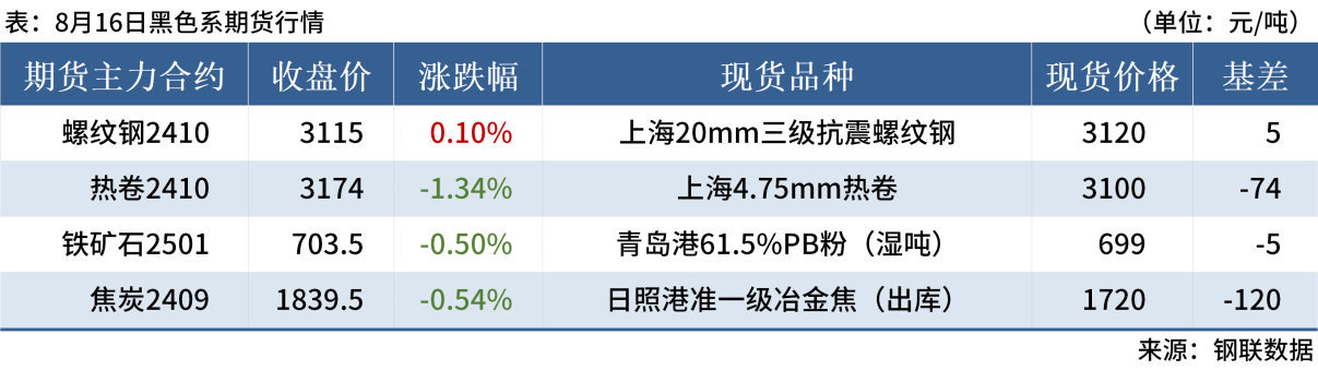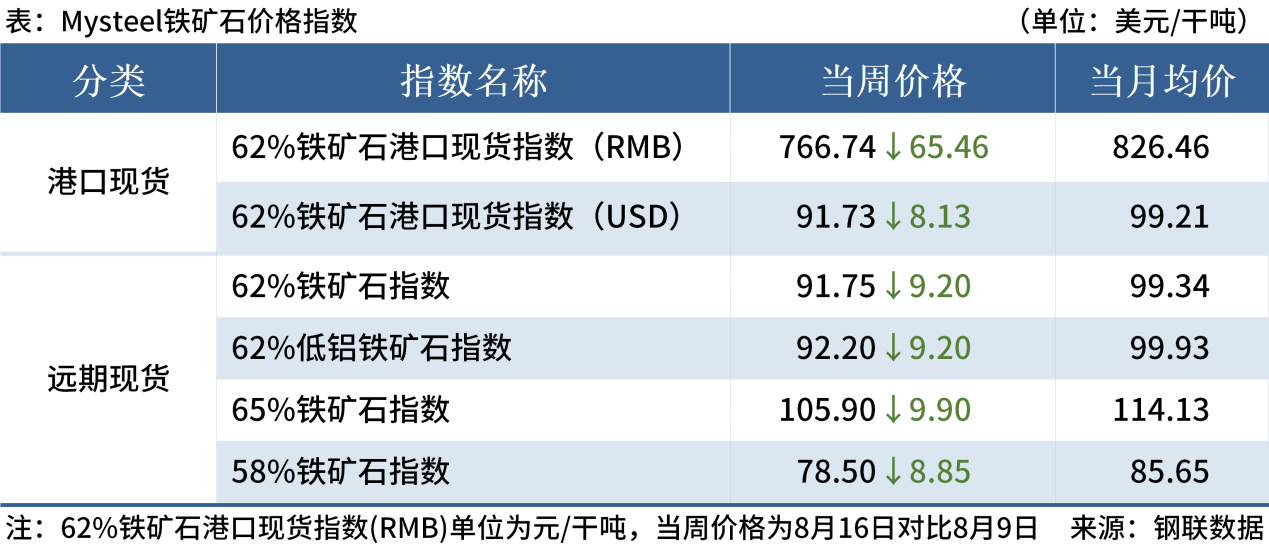 ◎ 8月16日,全國主港鐵礦石成交84.90萬噸,環(huán)比減10.3%;237家主流貿(mào)易商建筑鋼材成交9.26萬噸,環(huán)比減4.7%。