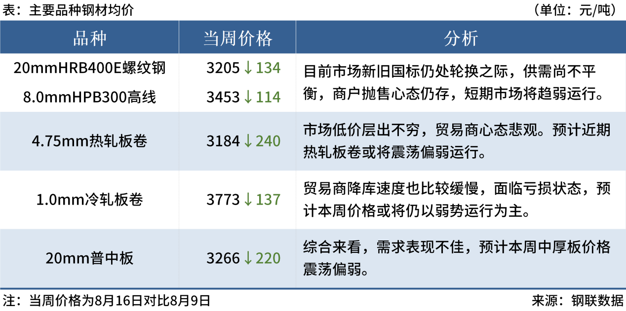 ◎ 8月16日,全國冷軋均價創(chuàng)五年內(nèi)新低點(diǎn)3773元/噸。供需矛盾持續(xù)激化,未來的一段時間里面,冷軋板卷價格或?qū)⒗^續(xù)下跌,在需求端難有起色的情況下,供應(yīng)或成為未來冷軋板卷價格變化的最大影響因素。詳情>>