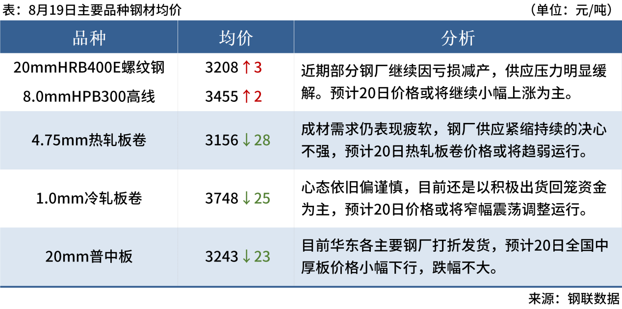 ◎ 山西興華計(jì)劃于8月19日棒線停產(chǎn)檢修,暫定一個(gè)月,影響棒材產(chǎn)量約8萬噸。