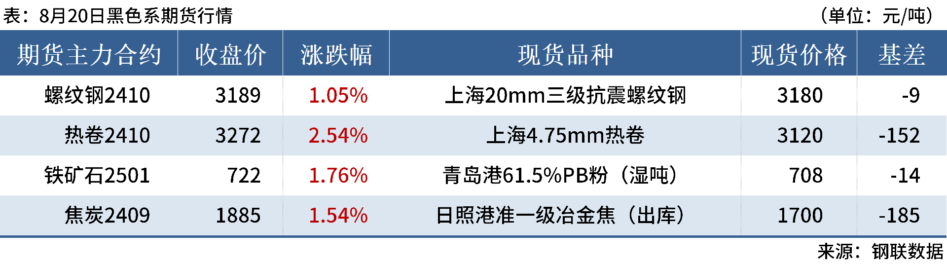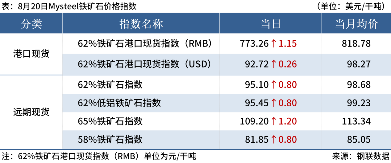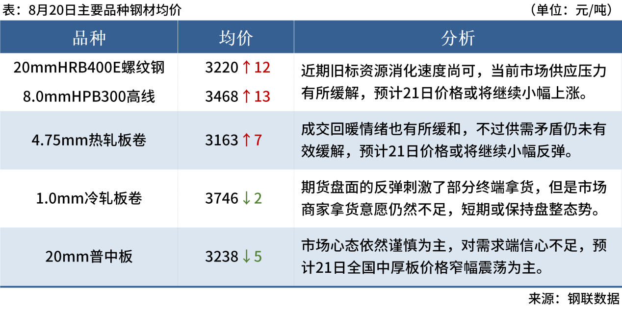 ◎ 8月20日,全國(guó)主港鐵礦石成交81.40萬(wàn)噸,環(huán)比減10.8%;237家主流貿(mào)易商建筑鋼材成交12.24萬(wàn)噸,環(huán)比減3.1%。
