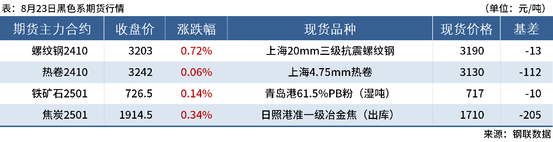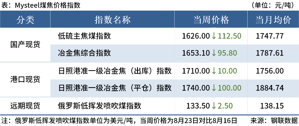 ◎8月23日,焦炭第六輪提降落地。河北、山東市場(chǎng)主流鋼廠對(duì)焦炭采購(gòu)價(jià)濕熄下調(diào)50元/噸,干熄下調(diào)55元/噸。