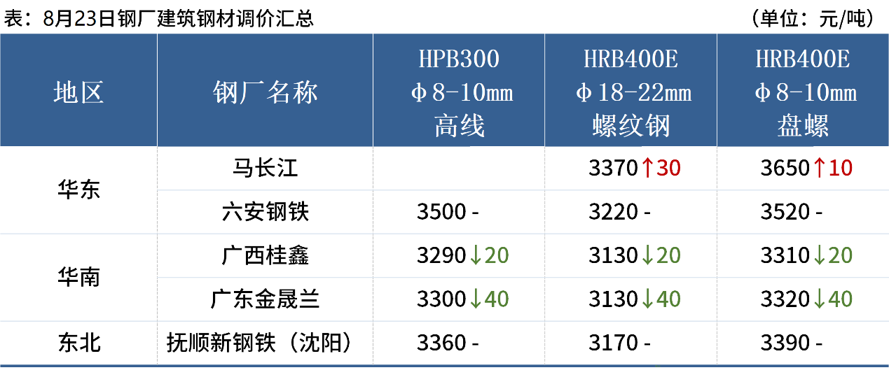 ◎福建三寶鋼鐵計(jì)劃從8月27日起對(duì)1350立方高爐進(jìn)行檢修,日均影響產(chǎn)量約0.5萬(wàn)噸,預(yù)計(jì)9月15日復(fù)產(chǎn)。