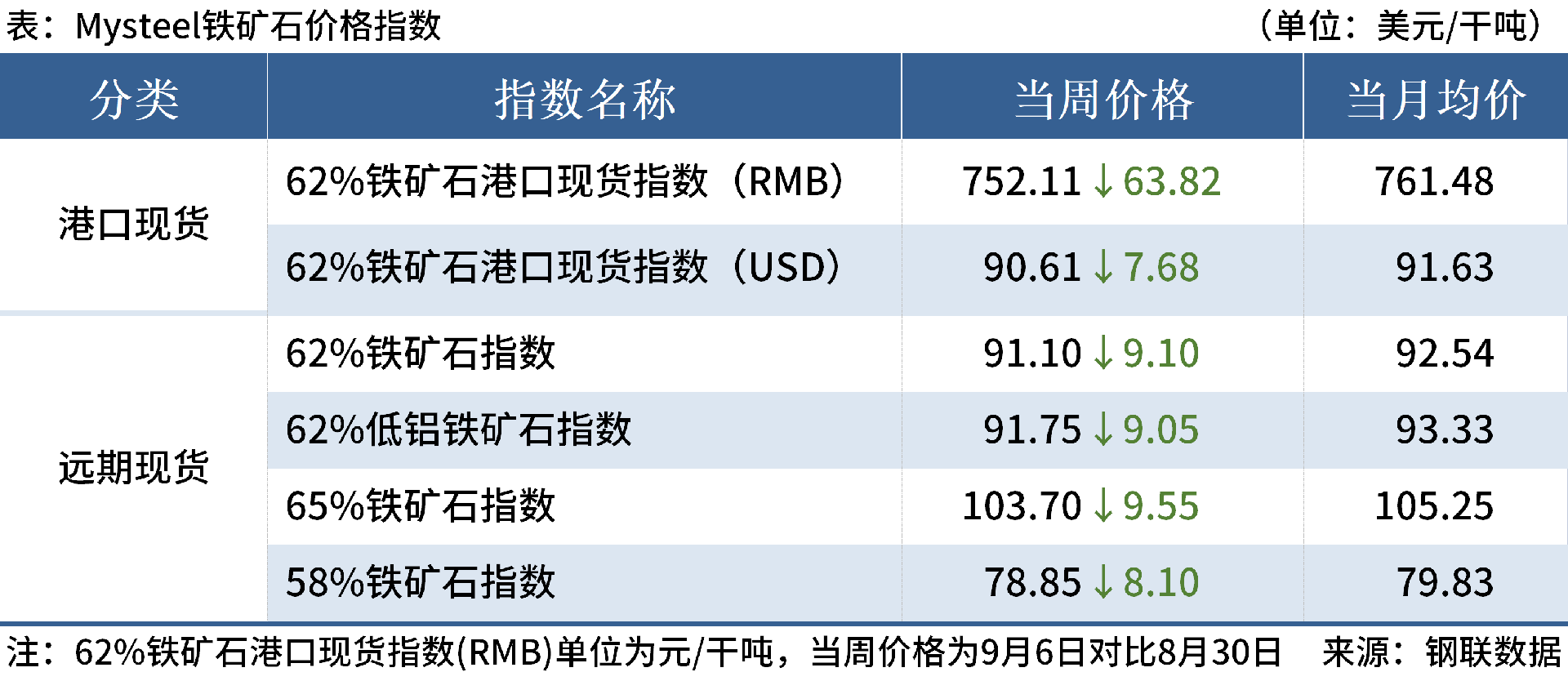◎ 9月6日,全國主港鐵礦石成交75.30萬噸,環(huán)比減30.5%;237家主流貿(mào)易商建筑鋼材成交10.26萬噸,環(huán)比增13.2%。
