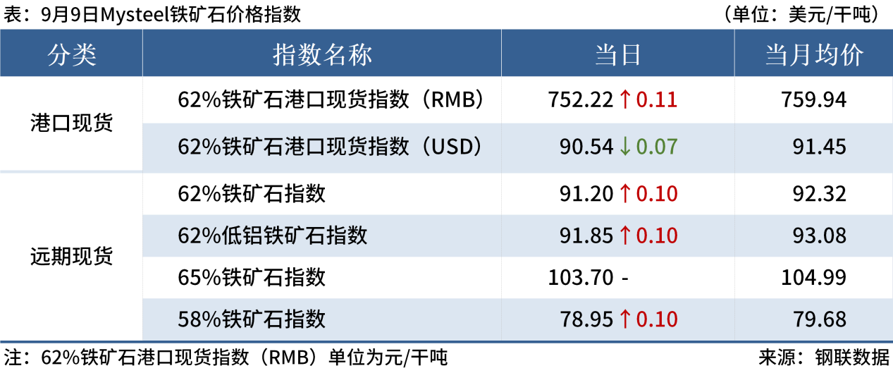 ◎ 9月9日,全國主港鐵礦石成交94.00萬噸,環(huán)比增24.8%;237家主流貿(mào)易商建筑鋼材成交13.50萬噸,環(huán)比增31.6%。