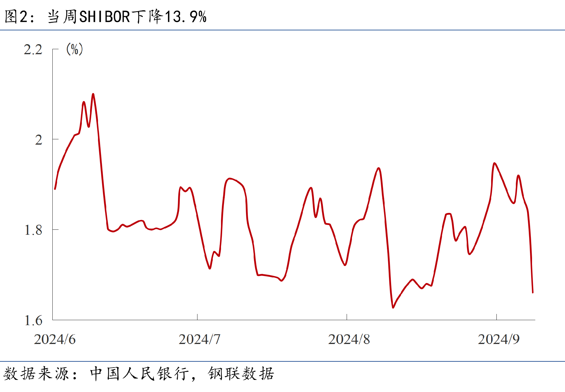 9月25日,央行開(kāi)展3000億元1年中期借貸便利(MLF)操作,中標(biāo)利率2%,此前為2.3%。操作后,中期借貸便利余額為68780億元。從9月27日起,公開(kāi)市場(chǎng)7天期逆回購(gòu)操作利率由此前的1.70%調(diào)整為1.50%。