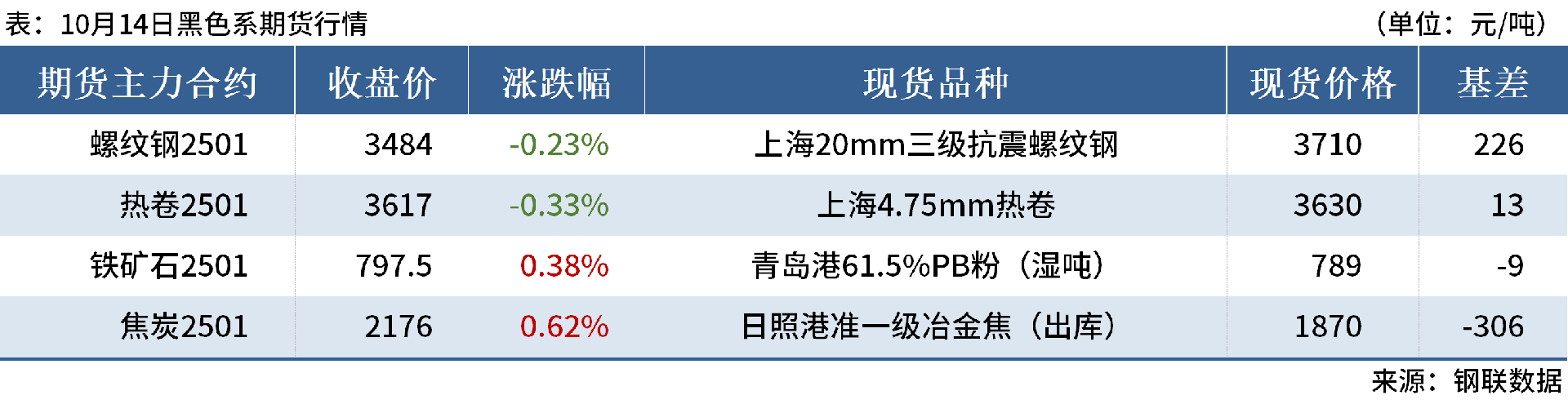 ◎10月14日,全國主港鐵礦石成交99.12萬噸,環(huán)比增17.4%;237家主流貿(mào)易商建筑鋼材成交13.32萬噸,環(huán)比減6%。