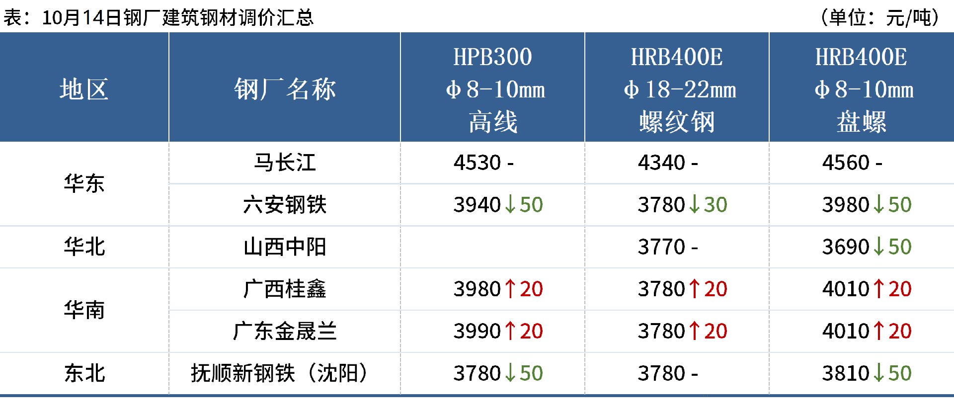 ◎自10月14日起,馬鋼彩涂產(chǎn)品價格上調(diào)含稅100元/噸。