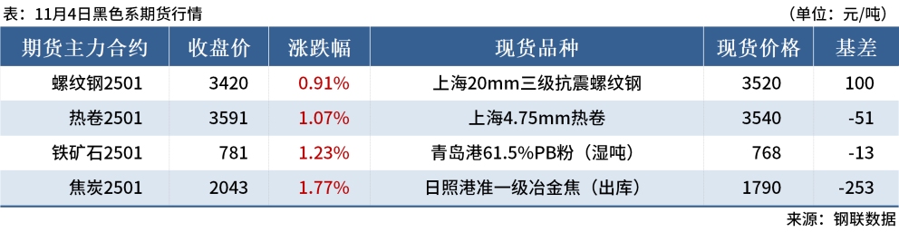 ◎11月4日,全國主港鐵礦石成交135.15萬噸,環(huán)比增67.9%;237家主流貿(mào)易商建筑鋼材成交15.42萬噸,環(huán)比增55.1%。