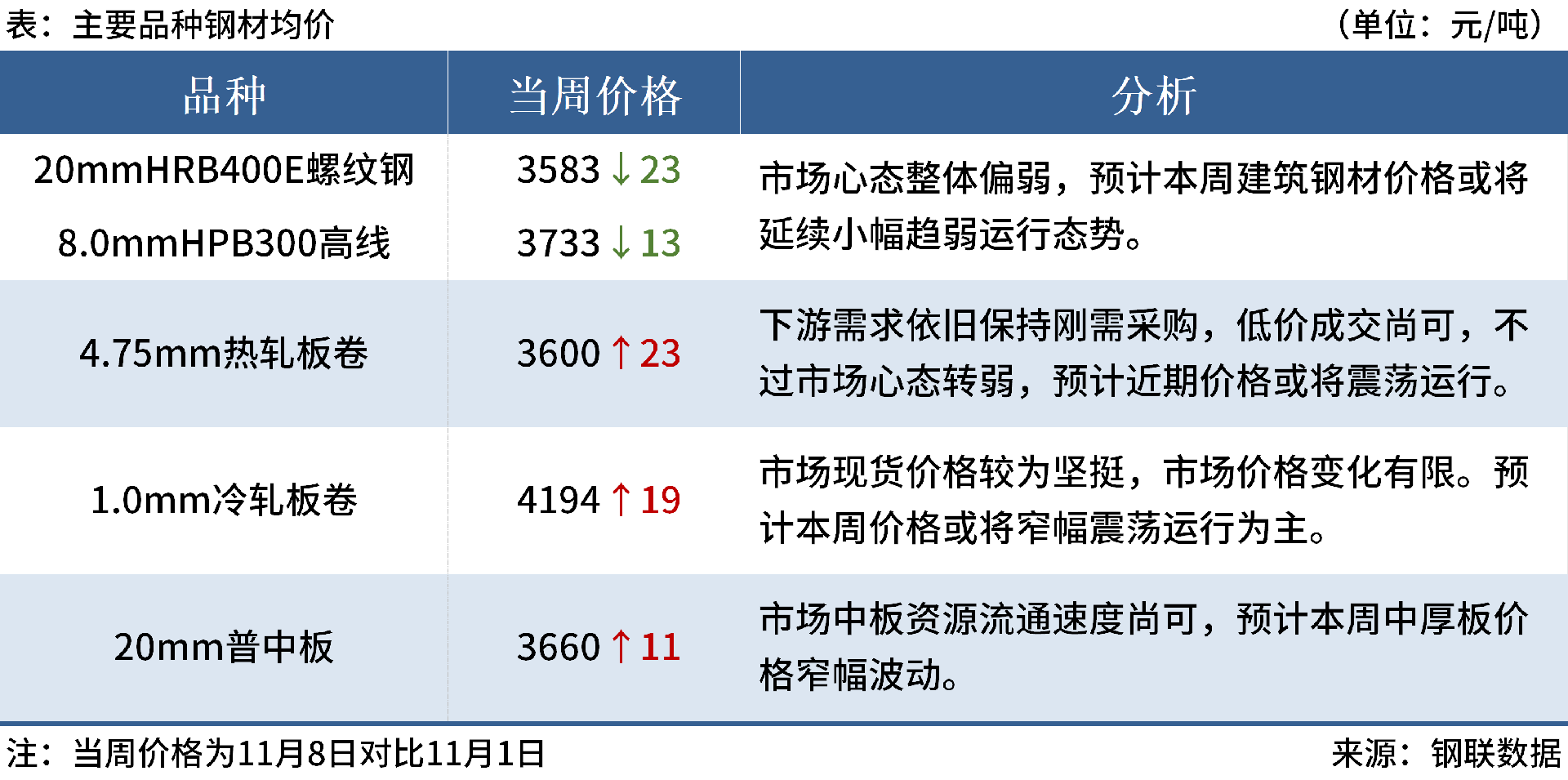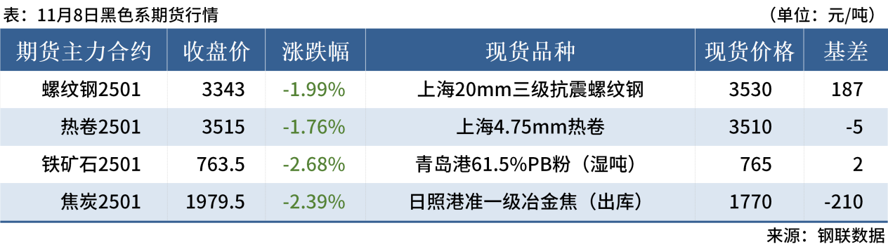 ◎ 11月8日,全國(guó)主港鐵礦石成交120.18萬(wàn)噸,環(huán)比減10.4%;237家主流貿(mào)易商建筑鋼材成交9.29萬(wàn)噸,環(huán)比減27.7%。