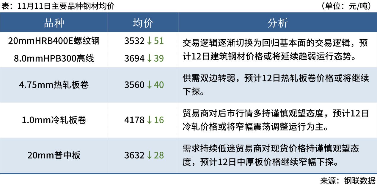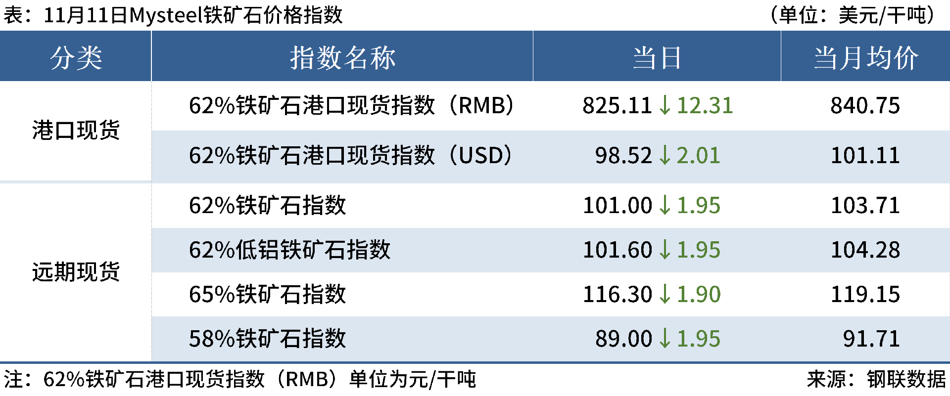 ◎ 11月11日,全國主港鐵礦石成交113.22萬噸,環(huán)比減5.8%;237家主流貿(mào)易商建筑鋼材成交11.26萬噸,環(huán)比增21.2%。