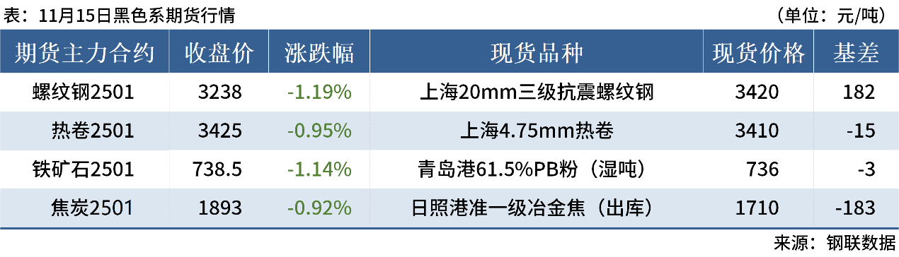 ◎11月15日,全國主港鐵礦石成交100.49萬噸,環(huán)比減3.1%;237家主流貿(mào)易商建筑鋼材成交10.01萬噸,環(huán)比增8.5%。