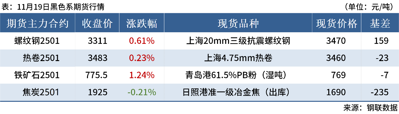 ◎11月19日,全國(guó)主港鐵礦石成交114.00萬(wàn)噸,環(huán)比減2.2%;237家主流貿(mào)易商建筑鋼材成交13.51萬(wàn)噸,環(huán)比增0.7%。