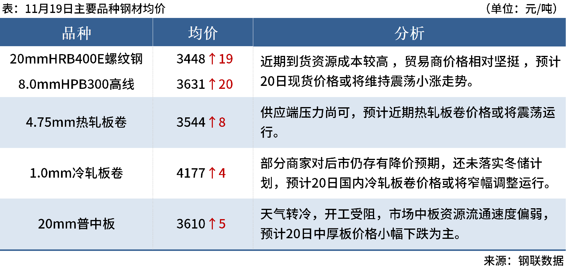 ◎11月19日,唐山遷安普方坯資源出廠含稅上調(diào)20元/噸,報(bào)3080元/噸。