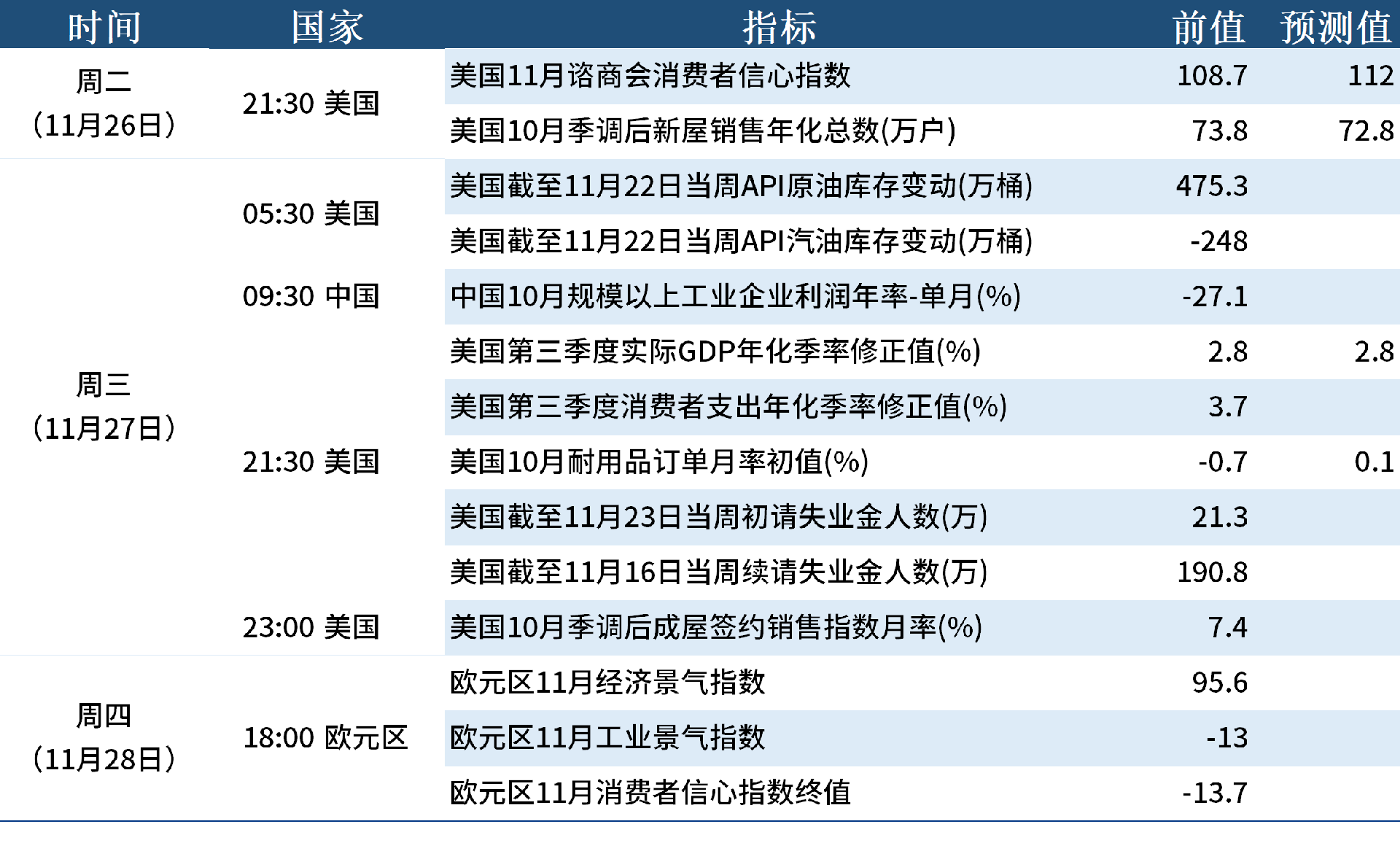 ◎ 11月15日,歐洲委員會預(yù)計歐元區(qū)2024年的經(jīng)濟(jì)增長為0.8%,2025年為1.3%,2026年為1.6%;預(yù)計2024年歐元區(qū)通脹率為2.4%,2025年為2.1%,2026年為1.9%。