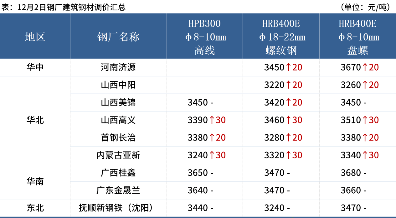 ◎ 12月3日,江蘇沙鋼廢鋼采購價格上調(diào)50元/噸,調(diào)后:重三含稅2560元/噸,爐一含稅2640元/噸,年累計跌幅為450-500元/噸。