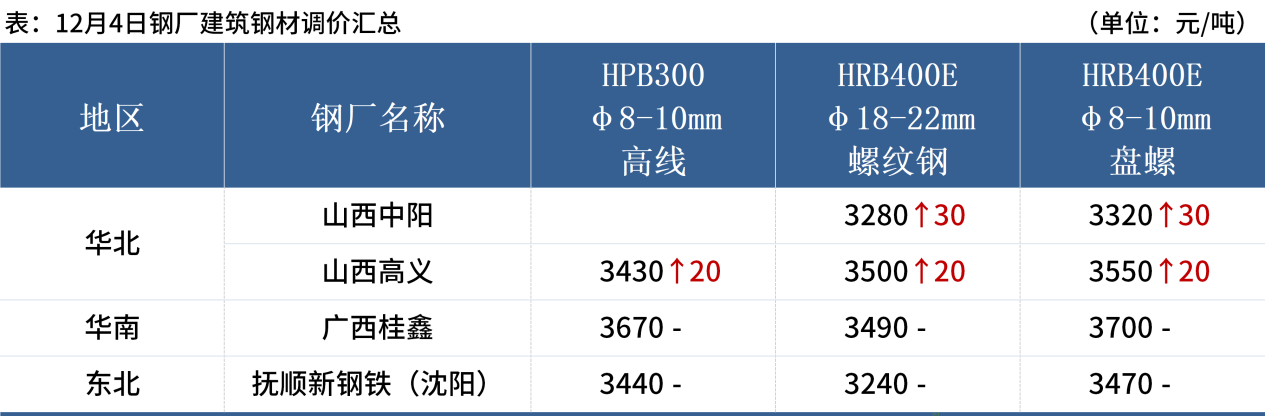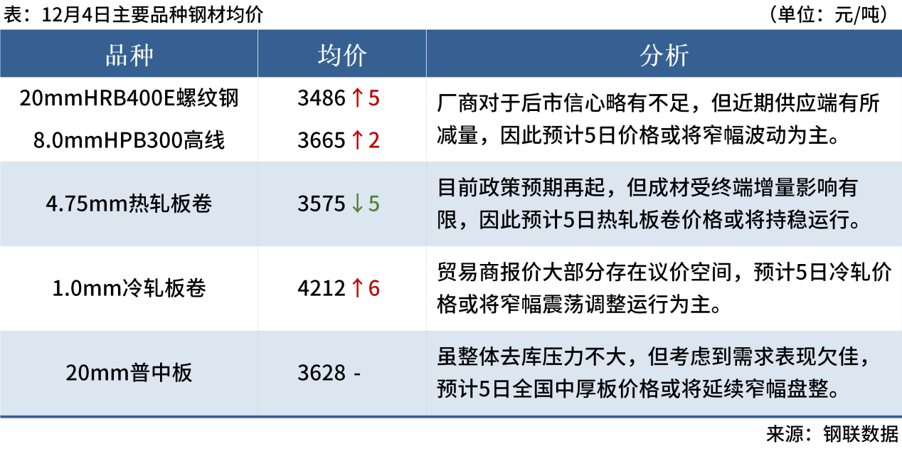 ◎ 12月4日,全國主港鐵礦石成交85.60萬噸,環(huán)比減26.8%;237家主流貿(mào)易商建筑鋼材成交10.35萬噸,環(huán)比減20%。