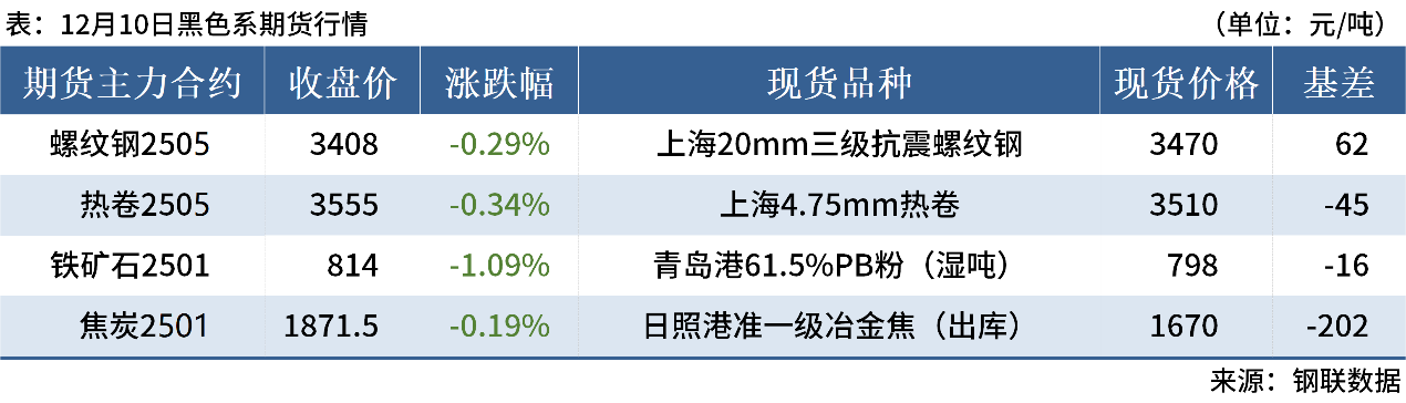◎12月10日,全國(guó)主港鐵礦石成交84.52萬(wàn)噸,環(huán)比減34.7%;237家主流貿(mào)易商建筑鋼材成交12.01萬(wàn)噸,環(huán)比減0.3%。