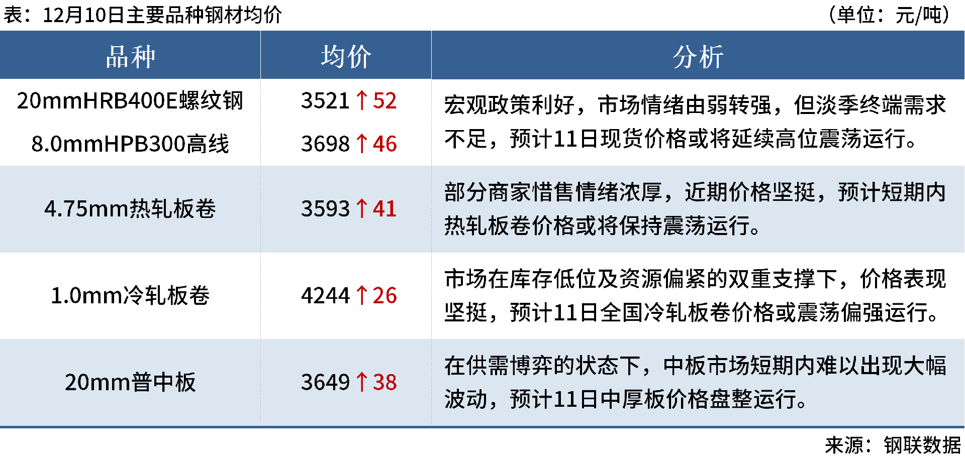 ◎12月11日,中天鋼鐵出臺(tái)12月中旬出廠價(jià),螺紋平,線材盤(pán)螺平。華東螺紋3580、線材盤(pán)螺3800。