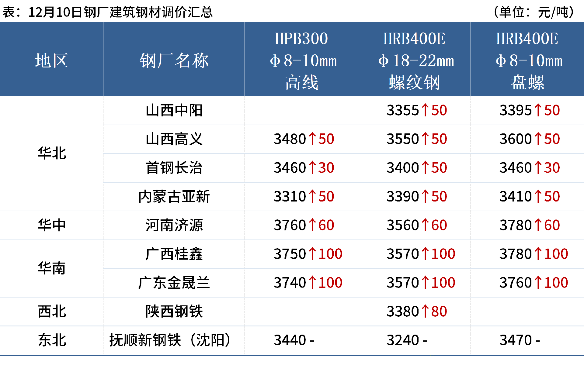 ◎12月10日,唐山遷安普方坯資源出廠含稅上調(diào)30元/噸,報(bào)3130元/噸。
